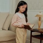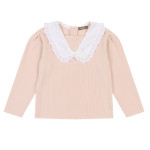 프릴카라와 셔링소매로 러블리한 티셔츠입니다. 블라우스와 티셔츠의 장점만 모은,활용하기 좋은 상품입니다.