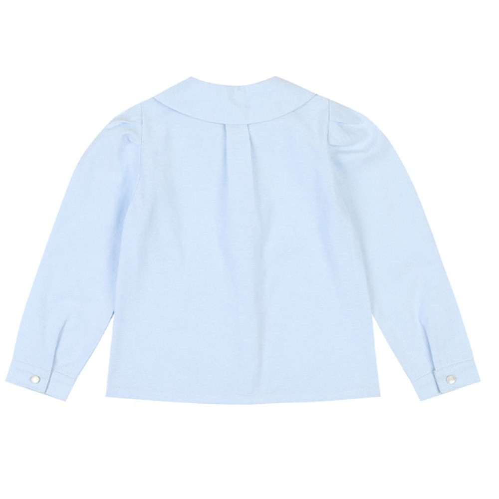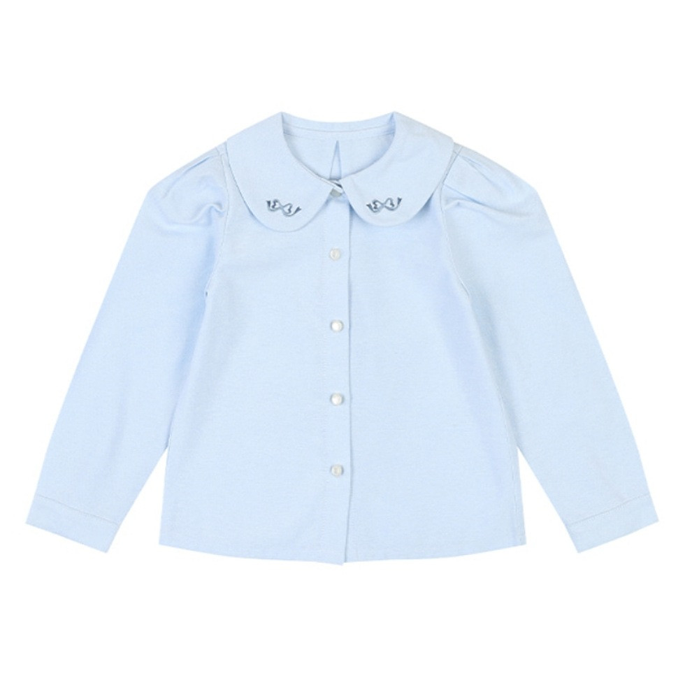 둥근 카라위에 리본자수로 포인트를 준 고급스러운 블라우스입니다. 단정한 느낌을 주는 블라우스로 프레피룩을 연출해도 예쁩니다. 스커트나 팬츠등 어디에나 잘 어울리고. 자켓이나 가디건에 같이 입어도 좋은,활용만점 아이템입니다.