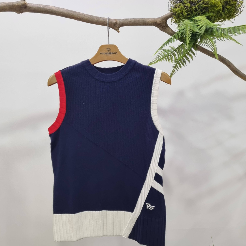팜스프링스 여성 골지배색 라운드 조끼는 가볍고 따뜻하며. 어떠한 티셔츠와도 코디가능하며 약간에 골지패턴이라 날씬해 보이며 입어서 아주 이쁘다