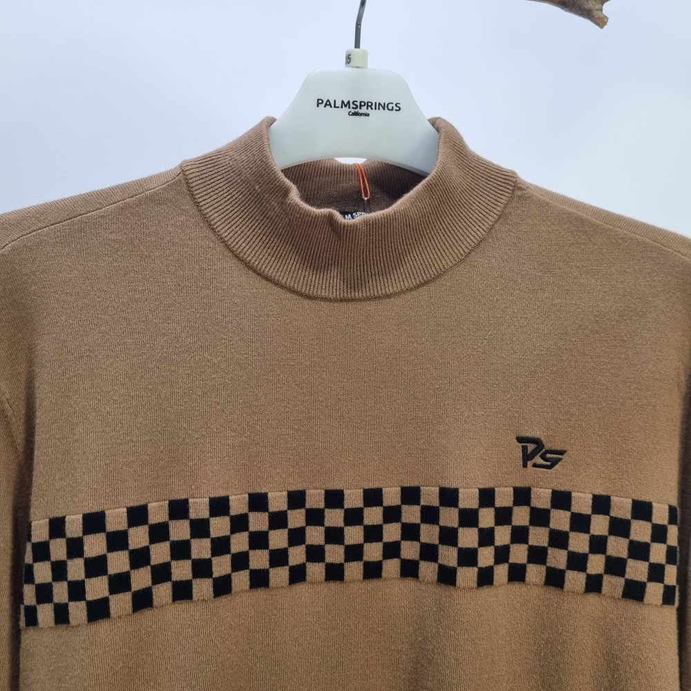 팜스프링스 남성 체크보드패턴 하이터틀 니트는 가을철 자켓이나 점퍼 와 코디하기 쉽고 앞부분에 체크 포인트가 멋스럽다