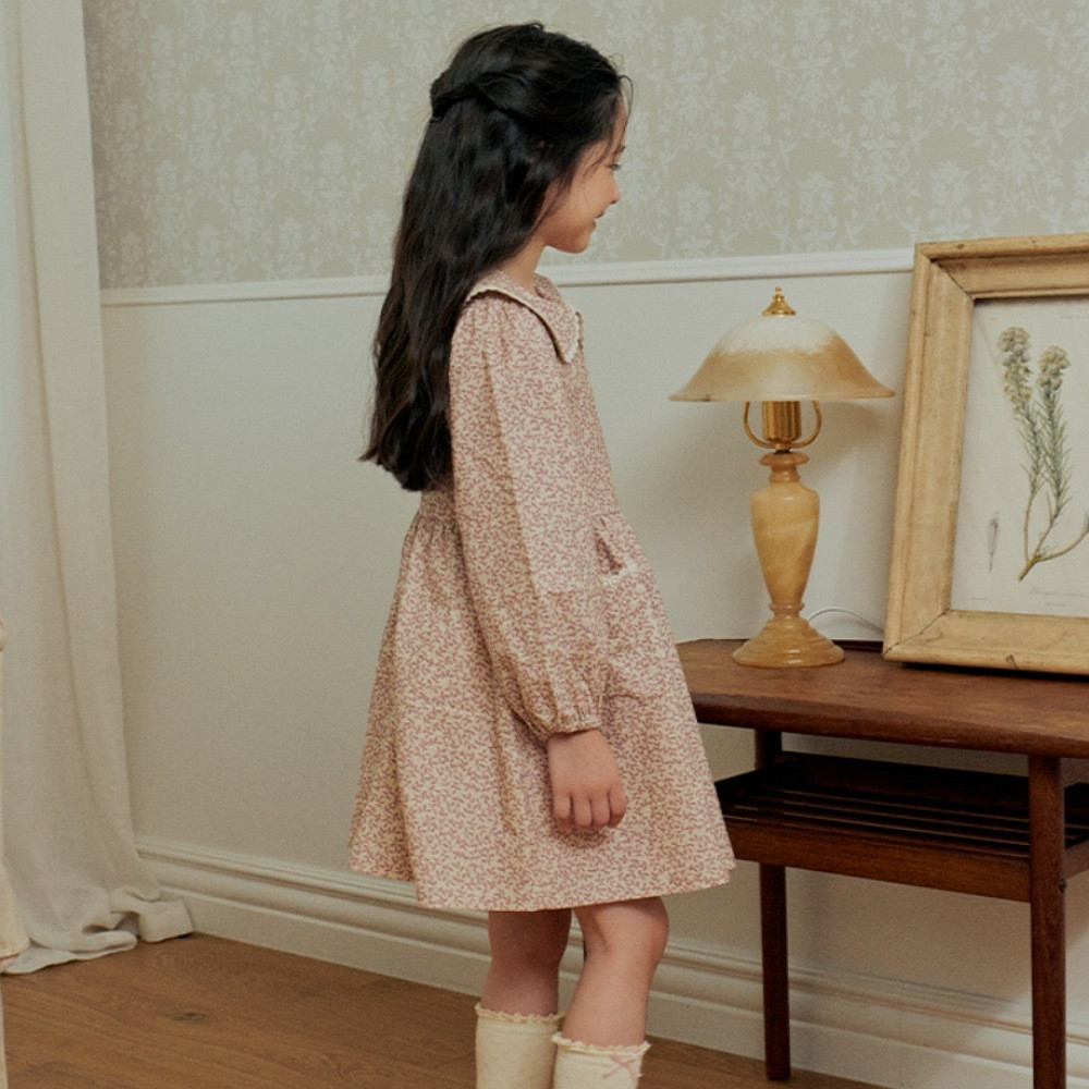 잔잔한 핑크컬러 패턴이 사랑스러운 원피스입니다. 둥근 카라와 앞포켓에 레이스로 포인트를 주어 고급스러운 상품입니다. 초가을에 입기좋은 원피스로 추석선물로 추천합니다.