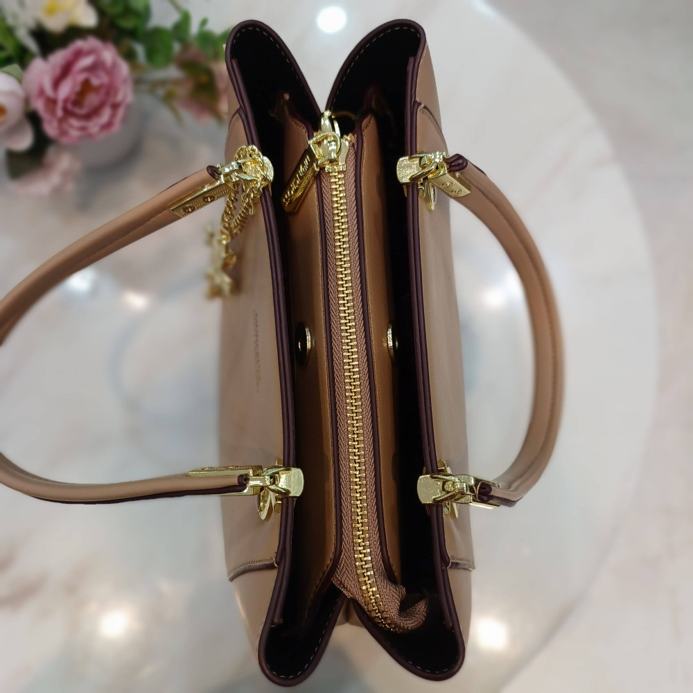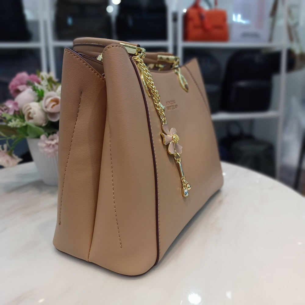 자연스러운 베이지톤으로 단아하고 고급스러운 토트백^^ 키링이 포인트~ 두가지 컬러톤으로 연출