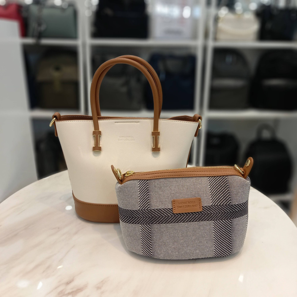 투톤 미듐 토트백으로 가볍고 어느스타일에 다 잘어울리는 상품이며 안에 파우치백은 따로 크로스백으로 사용가능합니다