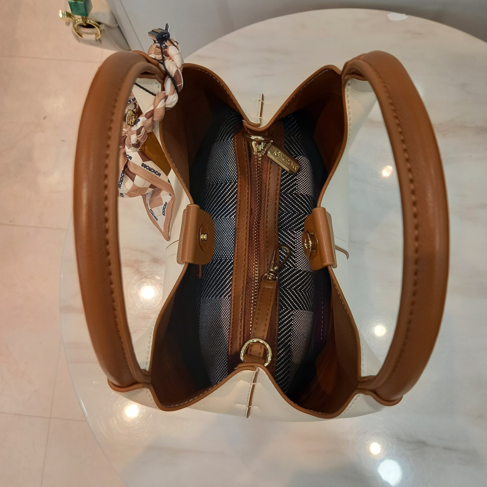 토트백 으로 두가지 디자인으로 바꿔가면서 사용가능하며 내부에는 파우치가 있어 수납하기 편한 스타일 입니다
