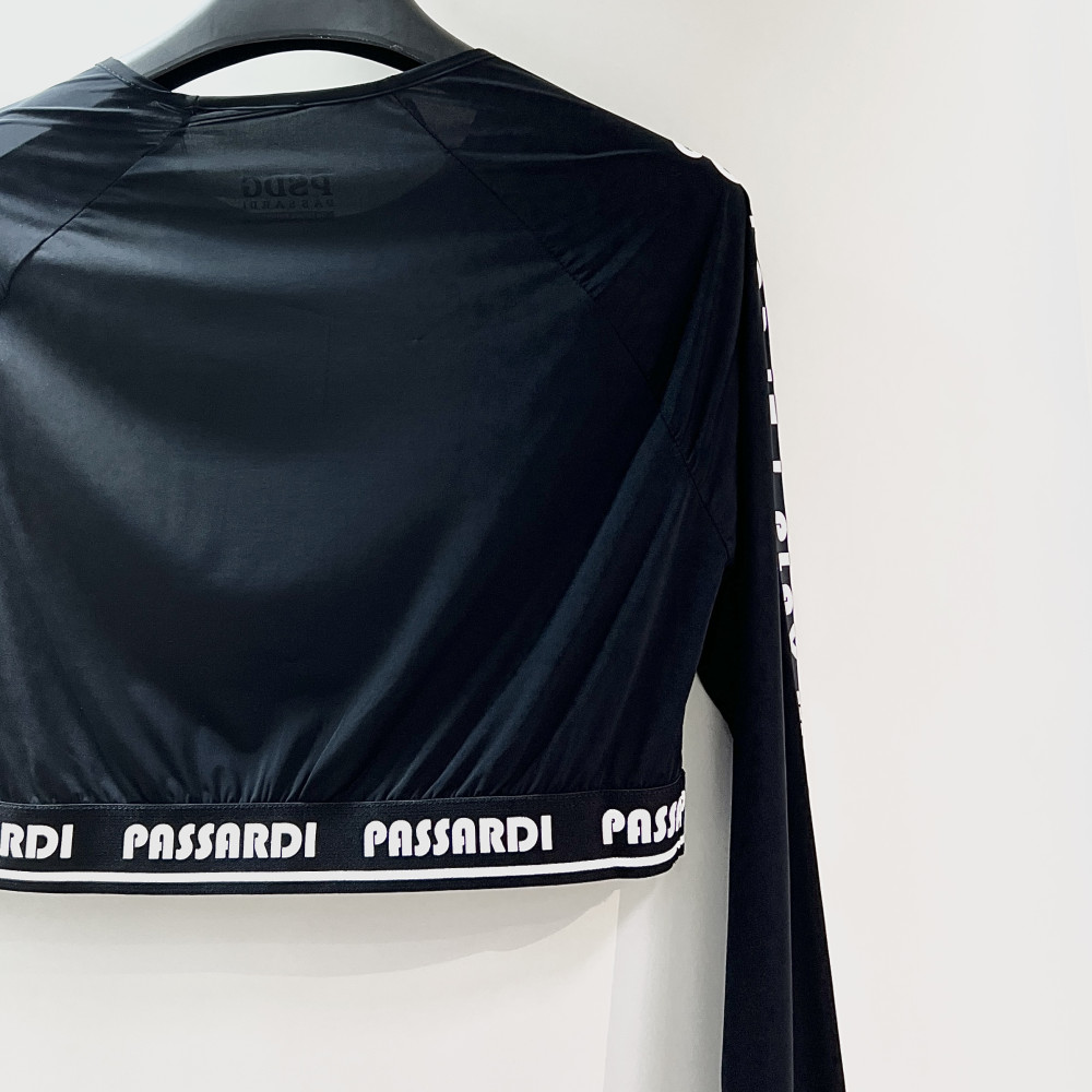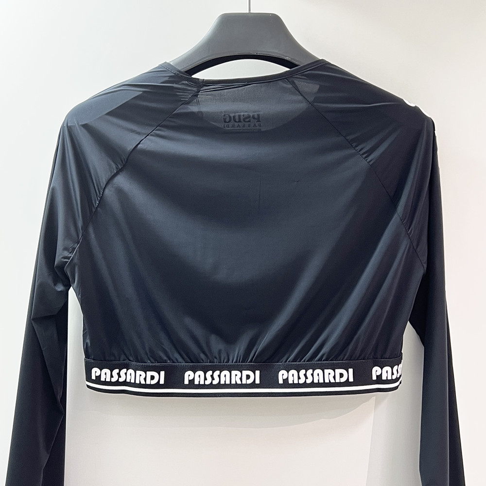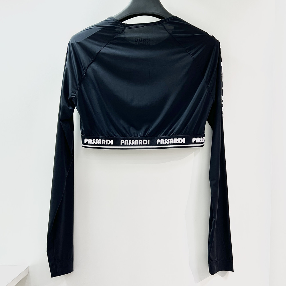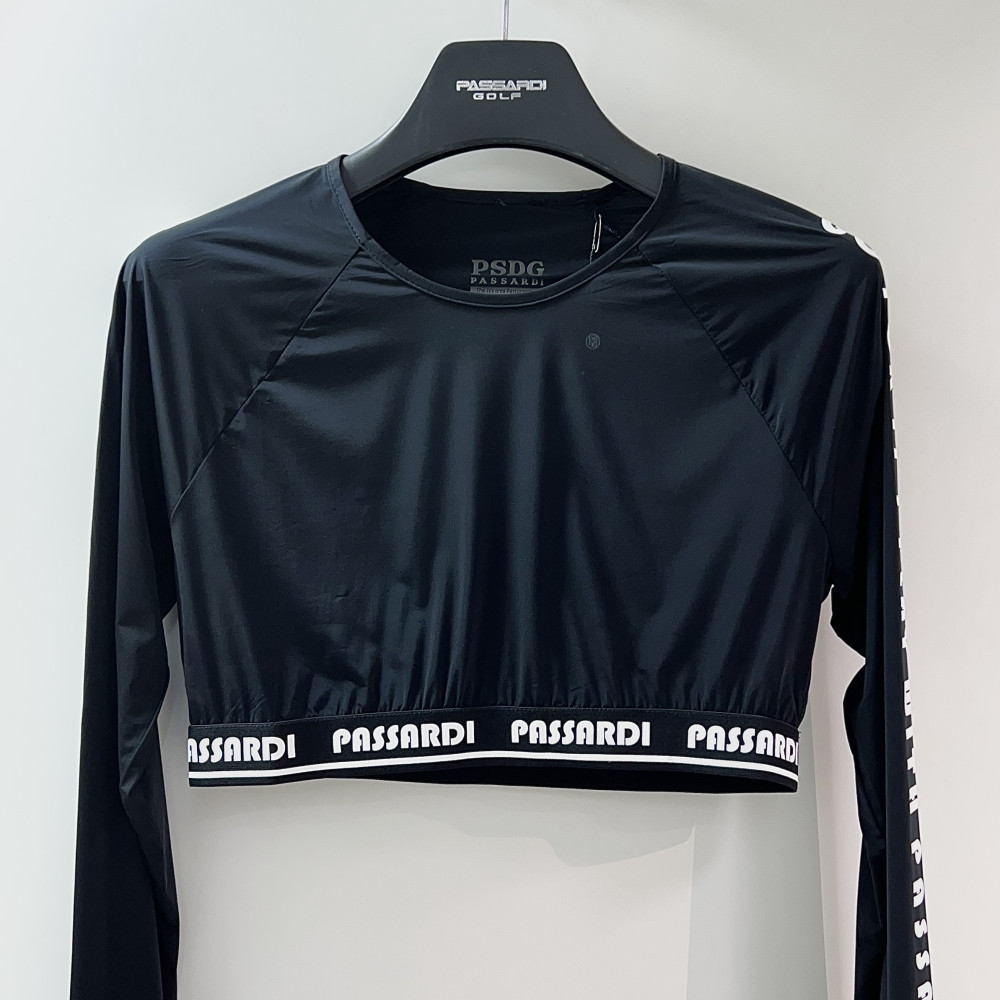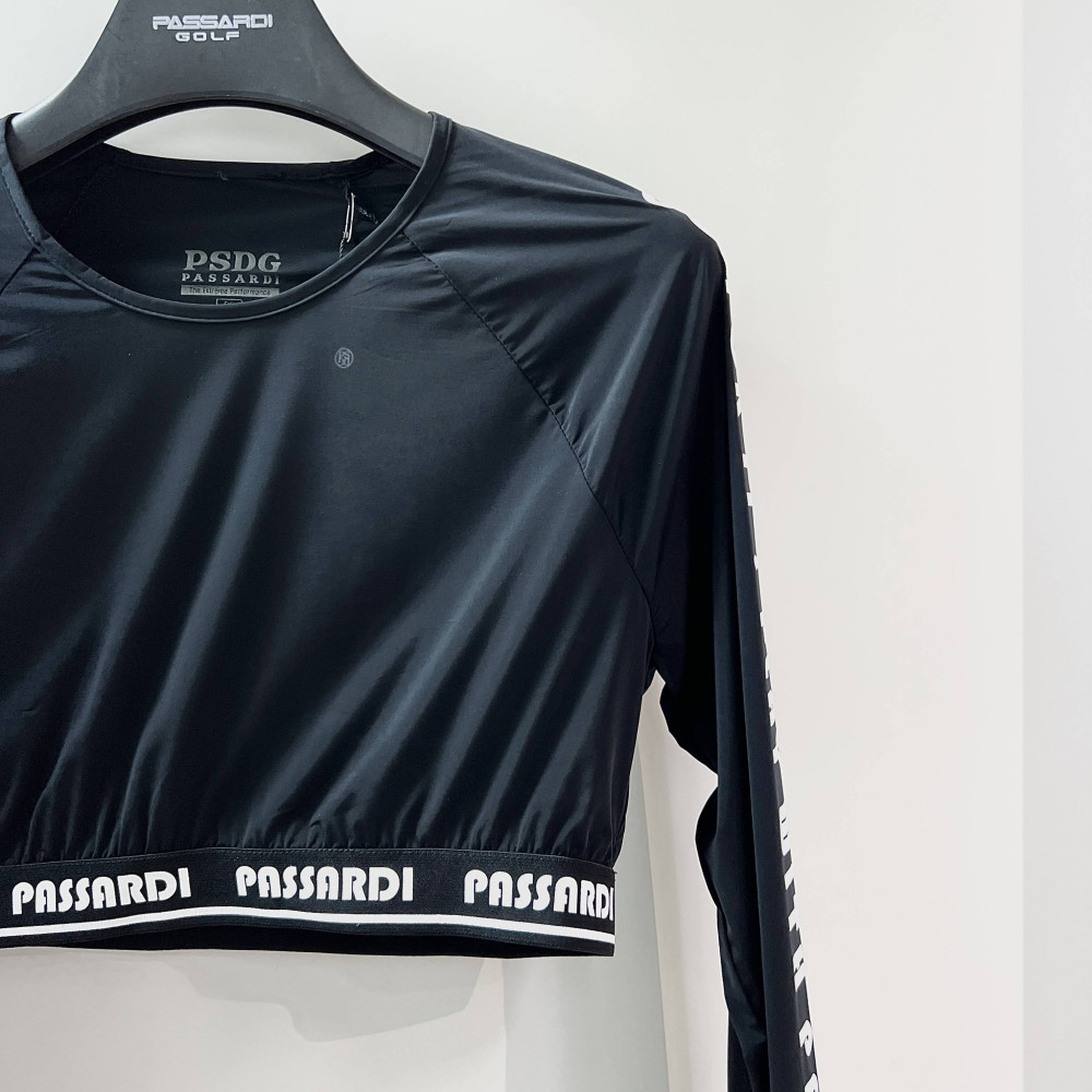 크롭 기장의 여성 긴팔 이너 티셔츠입니다.