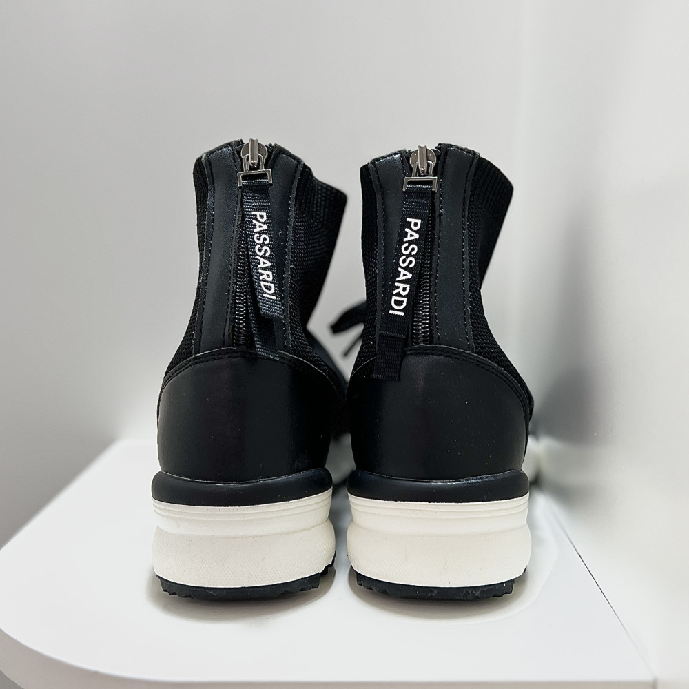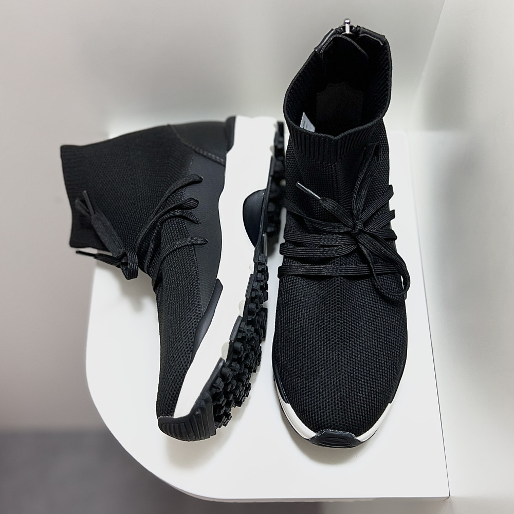뒷지퍼로 편안하게 탈착이 가능한 여성 니트 골프화 입니다. 세련된 디자인으로, 멋스럽게 착용하기 좋습니다.