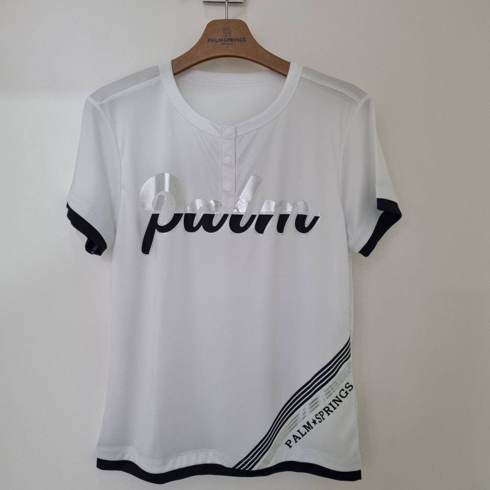 팜스프링스. 여성 호일 나염 라운드 티셔츠는 냉감 원단으로 답답하지 않고 신축성이 워낙 뛰어난 상품이다..