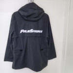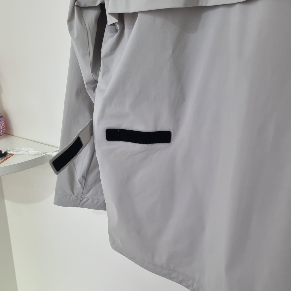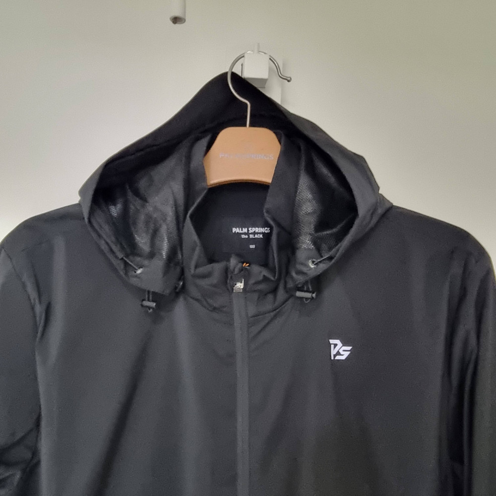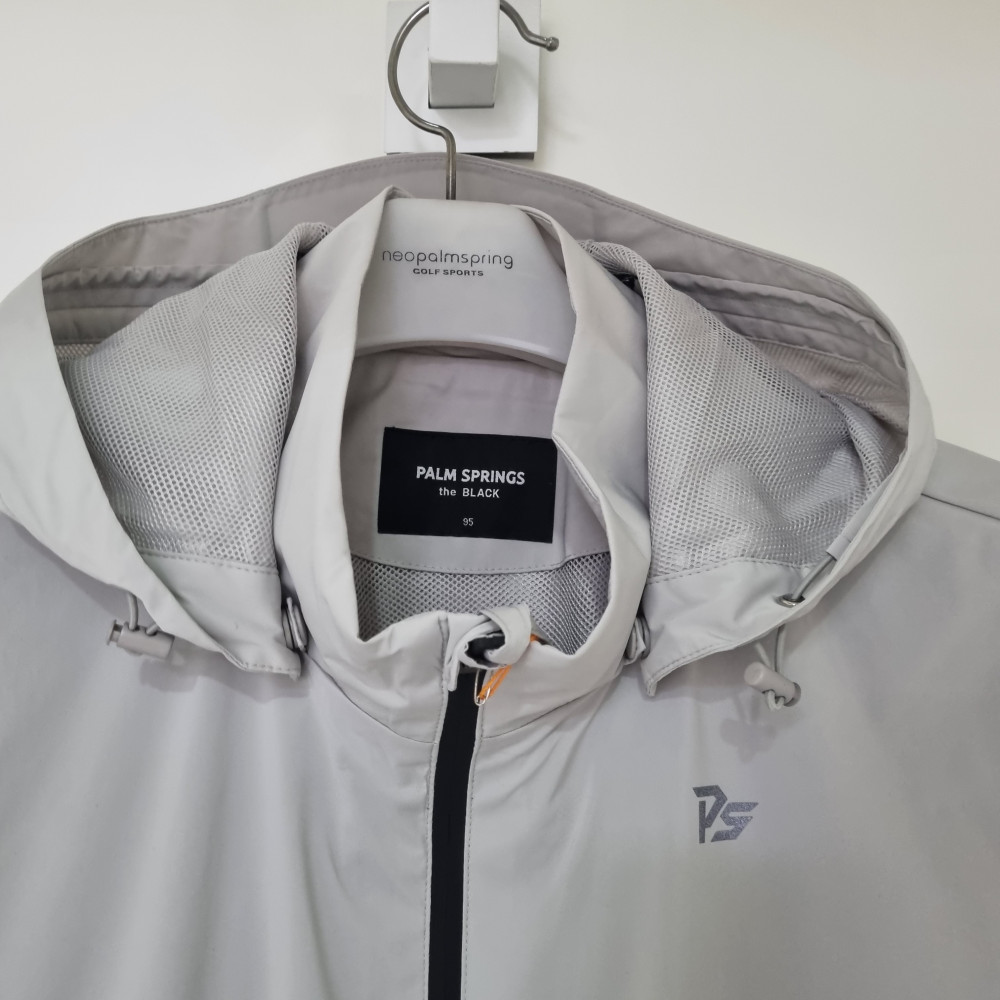 팜스프링스 후드 레인자켓은. 비오는날 등산갈때 바람막이 로 입을수있는 자겟이다 특히 비오는날 완벽하게 비가 차단되며 등 밑쪽에 있는 찍찍이로 체형을 커버할수 있는 제품이다