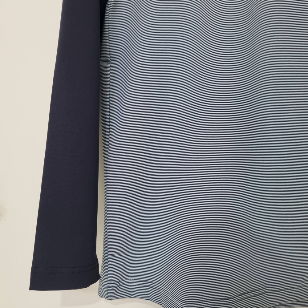 팜스프링스 봄 핀스트라이프 냉감소매티셔츠는 앞판. 뒷판 모두 줄무늬로 되어있으면 소매부분은 냉감원단으로 깔끔한 스타일이다