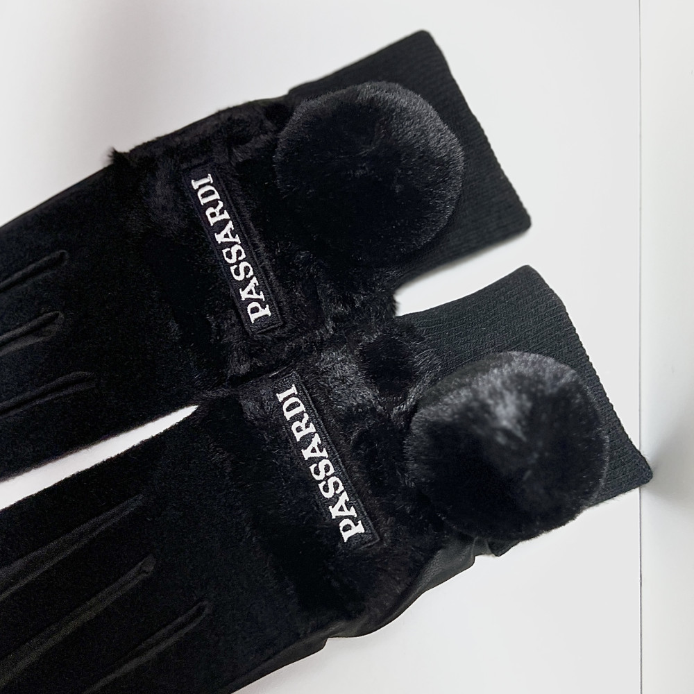 겨울 시즌에 착용하기 좋은 여성 방한 장갑입니다. 손목 부분에 귀여운 퍼 방울 장식을 포인트로 더해주었습니다.