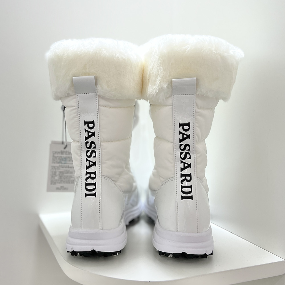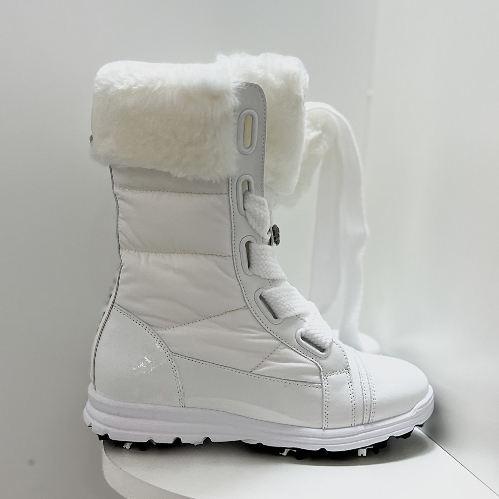 겨울 시즌에 따뜻하고 멋스럽게 착용하기 좋은 여성 중목 퍼 부츠 골프화입니다.