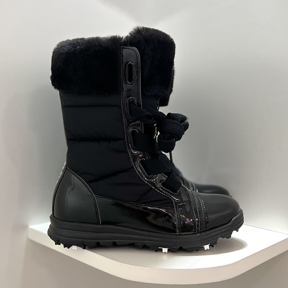 겨울 시즌에 따뜻하고 멋스럽게 착용하기 좋은 여성 중목 퍼 부츠 골프화입니다.