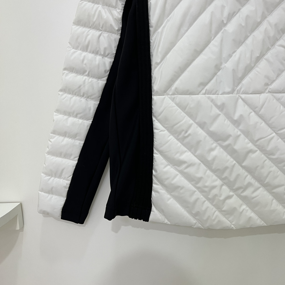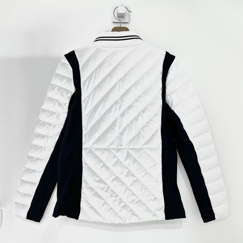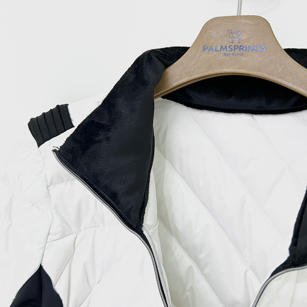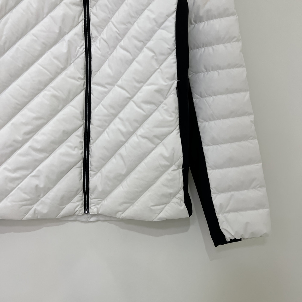 져지 배색이 들어가 착용감이 편안한 덕다운 소재의 여성 다운 점퍼입니다.