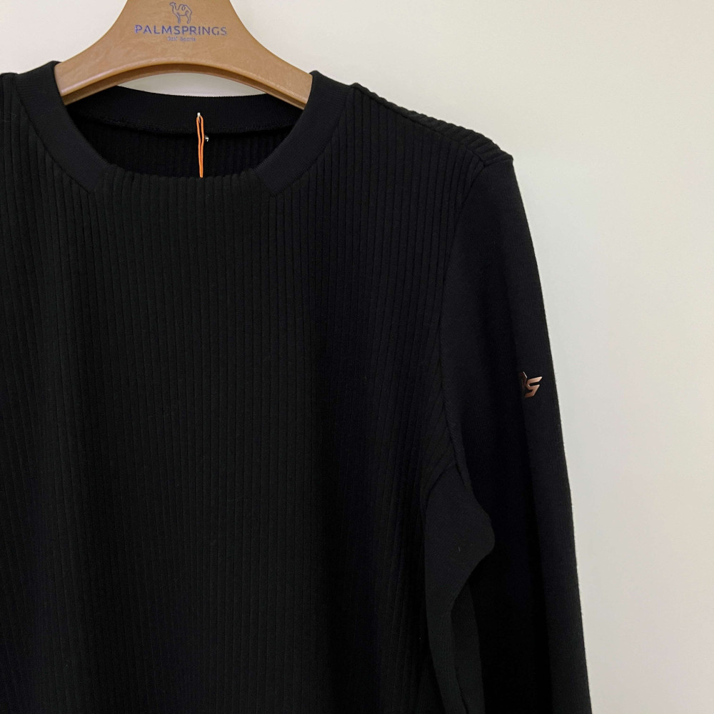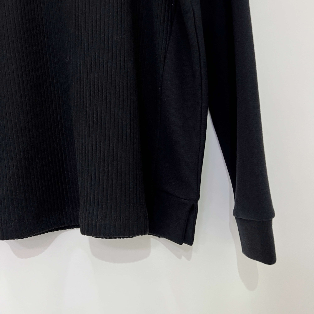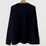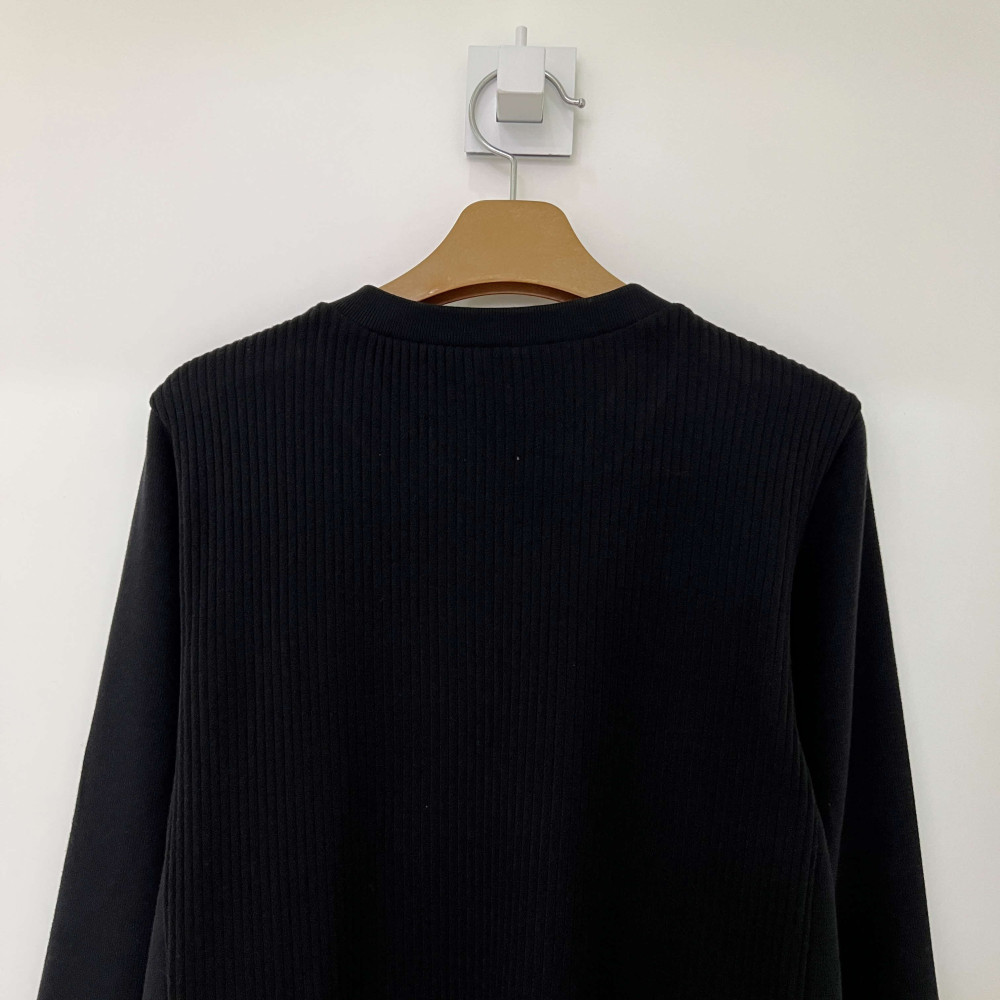 골지 배색으로 포인트를 더해준 라운드넥 긴팔 맨투맨 티셔츠입니다.
