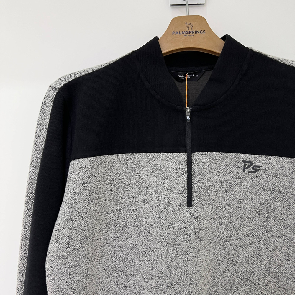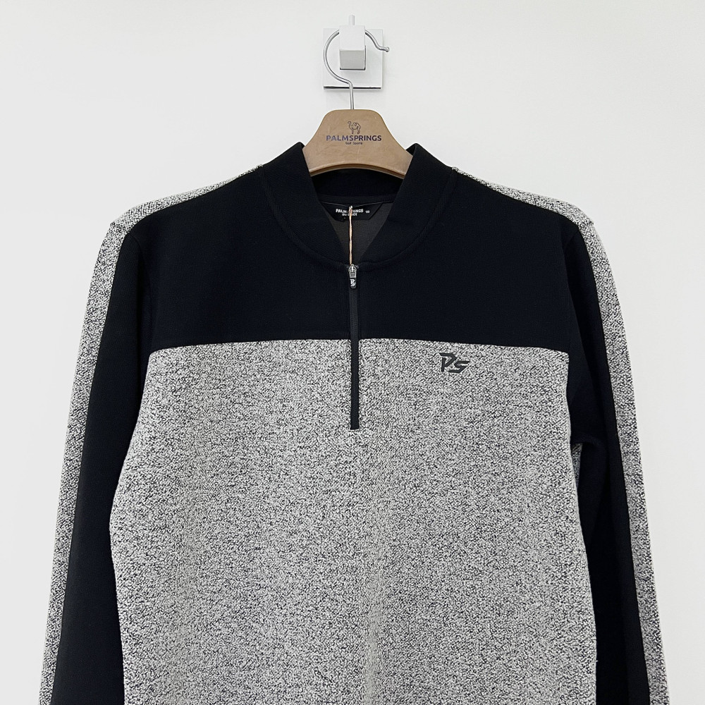 컬러 배색이 들어간 남성 긴팔 반집업 티셔츠입니다.