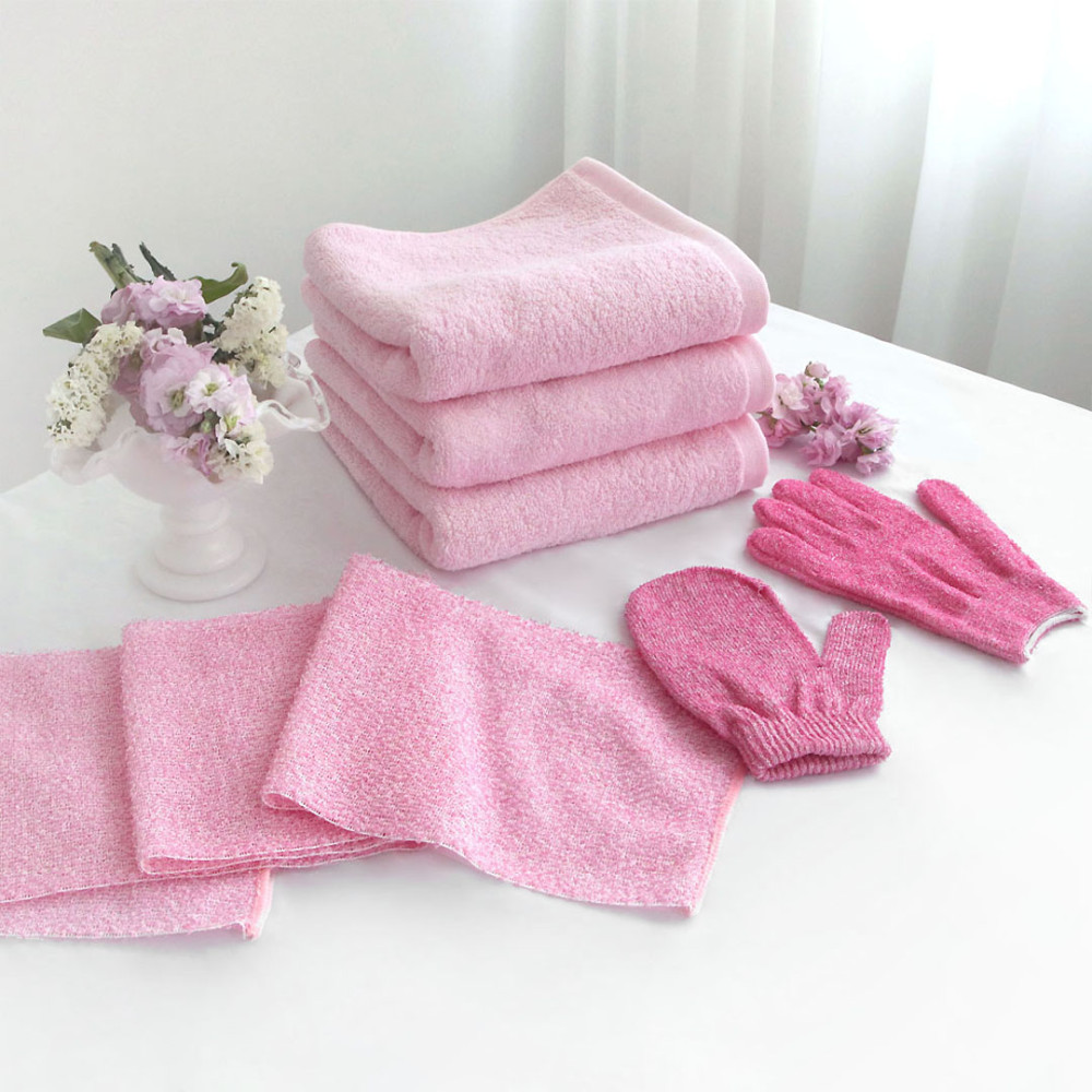 코튼랩 친환경 때밀이장갑 때수건 벙어리 목욕장갑 2P 핑크