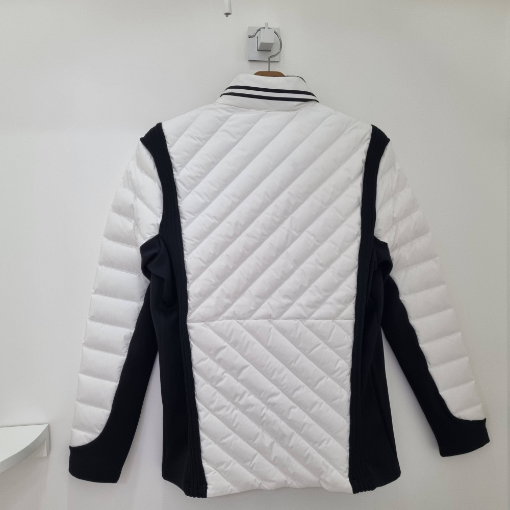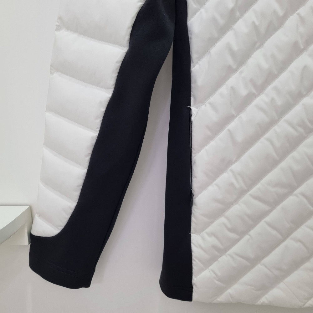 팜스프링스간절기 져지 믹스 다운점퍼는 등산이나 골프시 어깨와 옆구리 부분이 져지원단으로 되어있어. 활동적이며 풀스윙시에도 불편함을 전혀 못느낀다