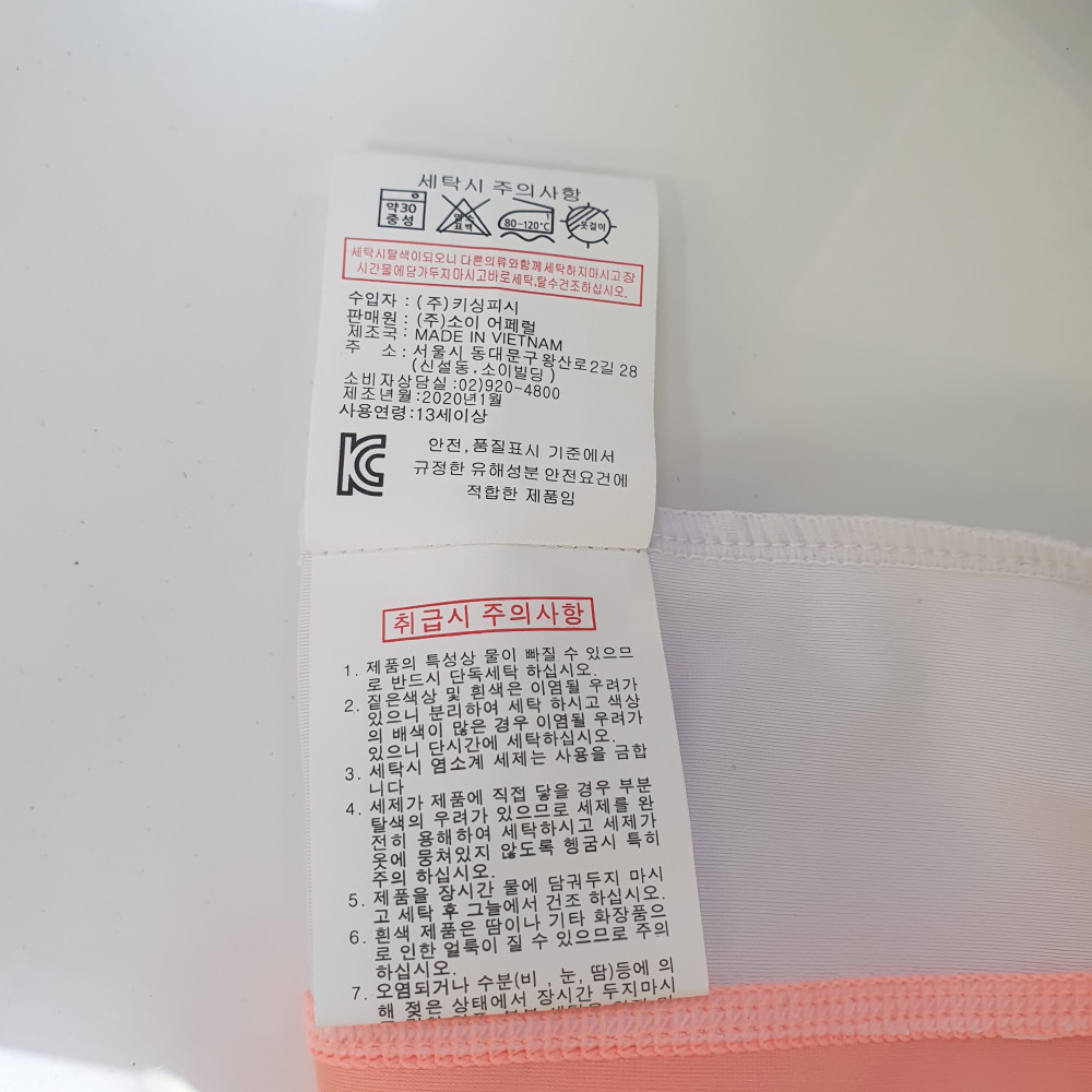 세탁방법 및 취급시 주의사항