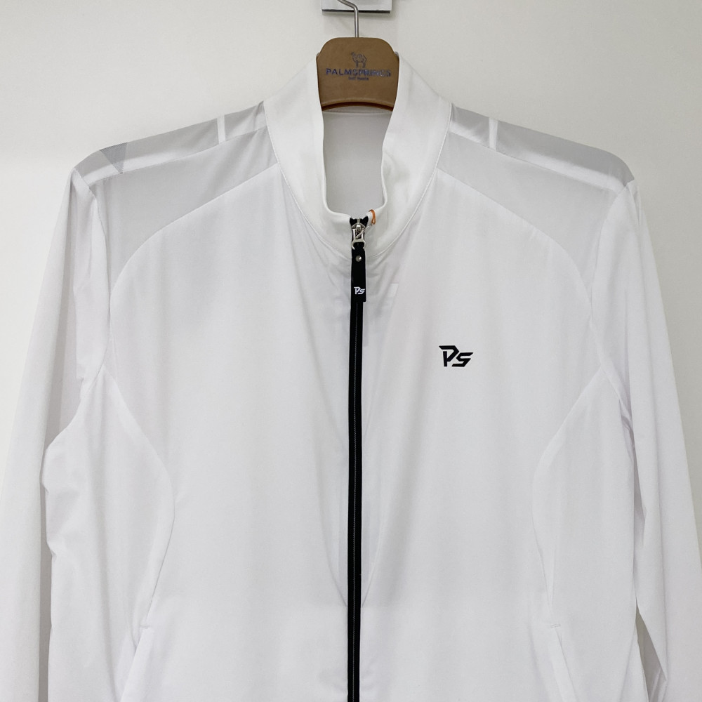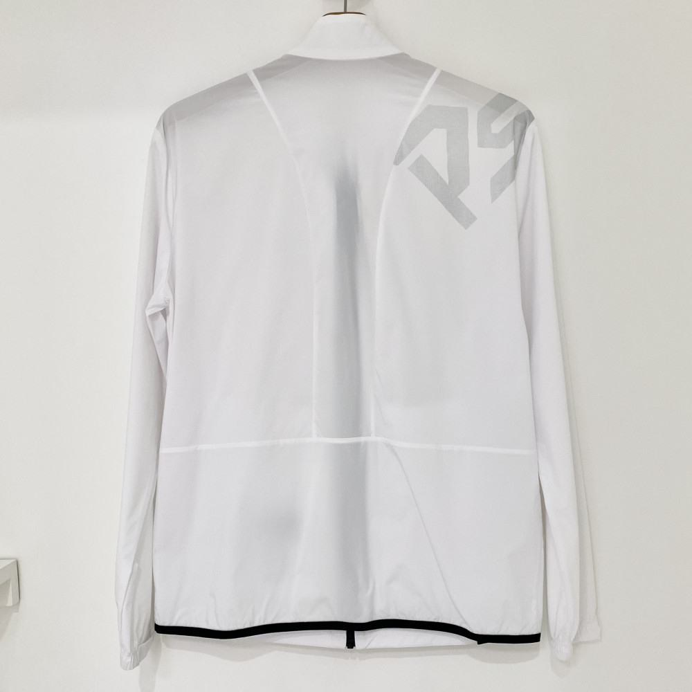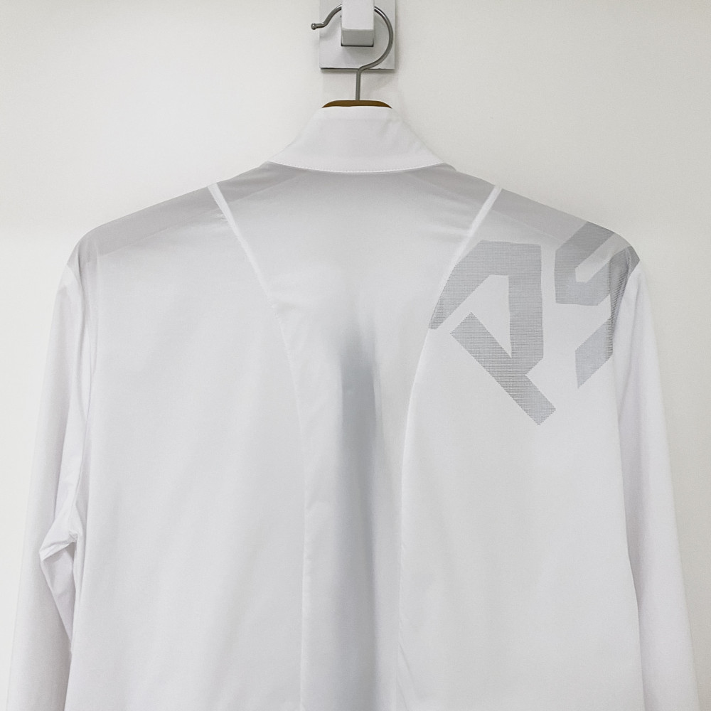 한쪽 어깨 뒷부분에 도트 로고 자수 포인트를 더해준 고탄력 풀집업 바람막이 점퍼입니다.