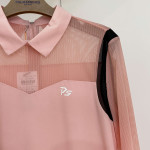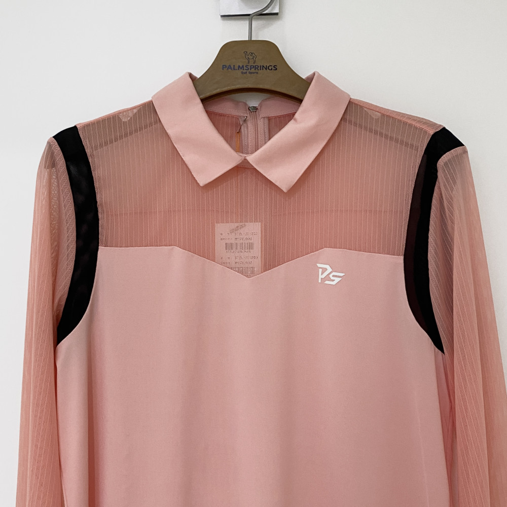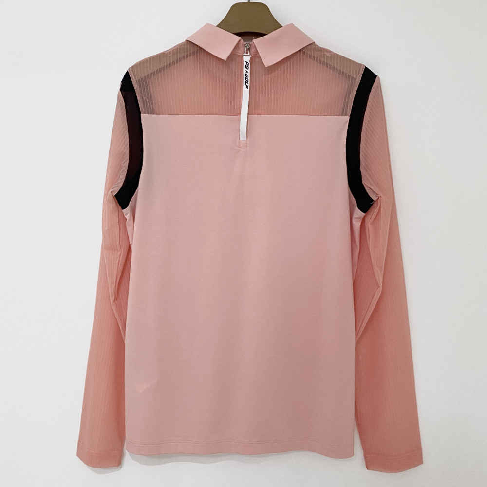 소매와 상단 부분 메쉬 소재 배색을 더해주어 시원하게 착용하기 좋은 여성 긴팔 카라 티셔츠입니다.