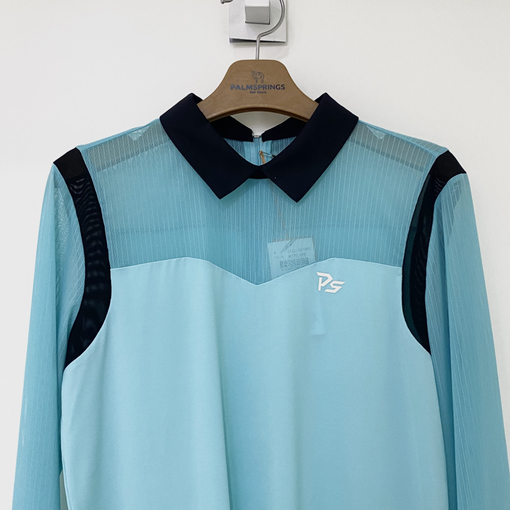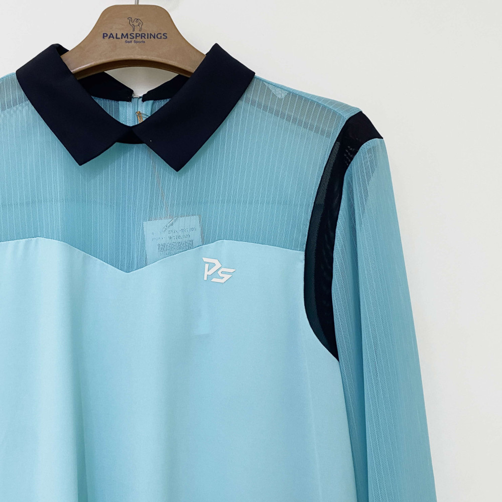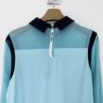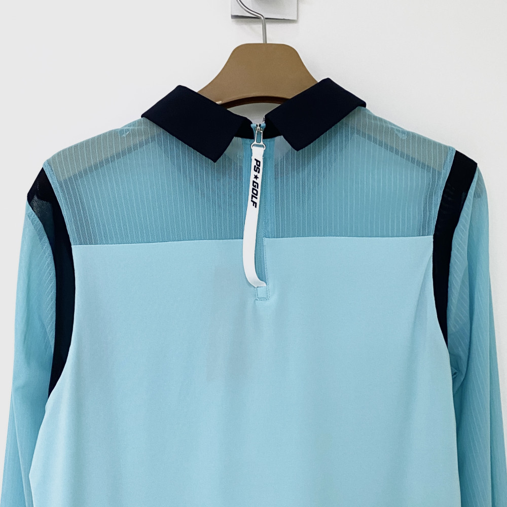 소매와 상단 부분 메쉬 소재 배색을 더해주어 시원하게 착용하기 좋은 여성 긴팔 카라 티셔츠입니다.