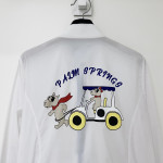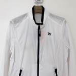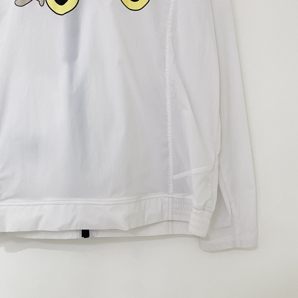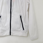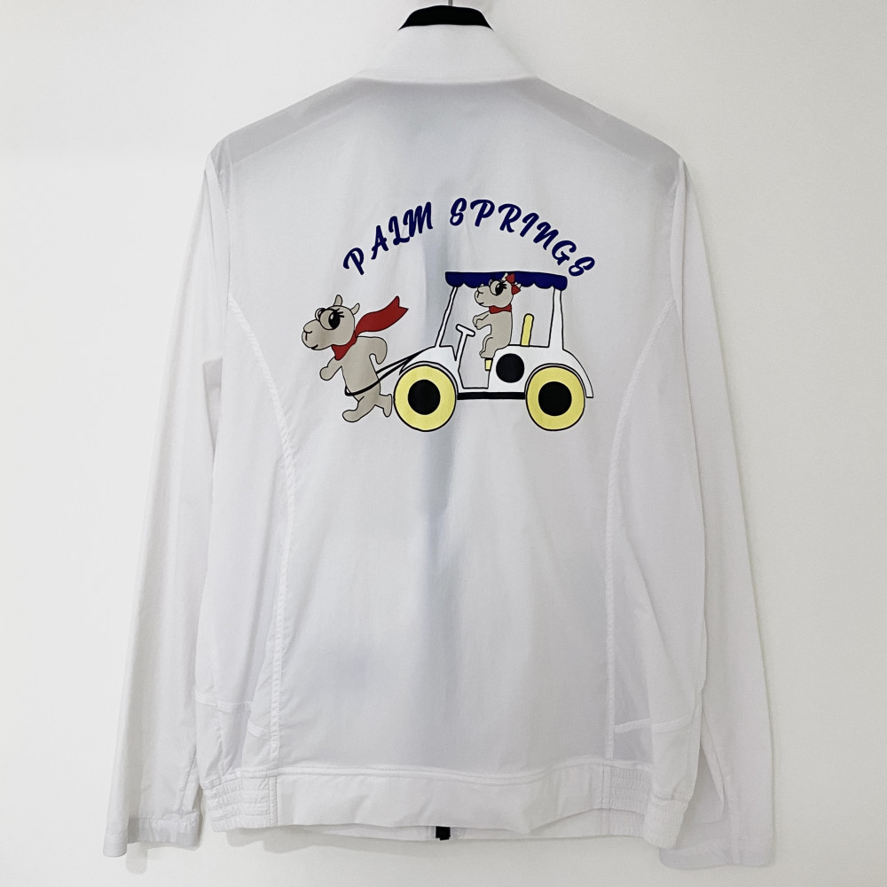 넥 부분 져지 소재 배색과 등판 프린팅을 포인트로 더해준 여성 간절기 하이넥 풀집업 바람막이 점퍼입니다.