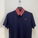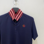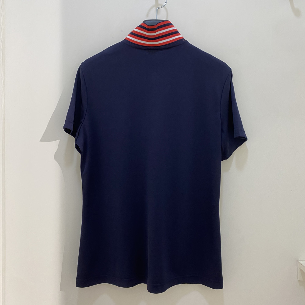 카라 배색으로 포인트를 더해준 여성 솔리드 반팔 티셔츠입니다.