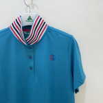 카라 배색으로 포인트를 더해준 여성 솔리드 반팔 티셔츠입니다.