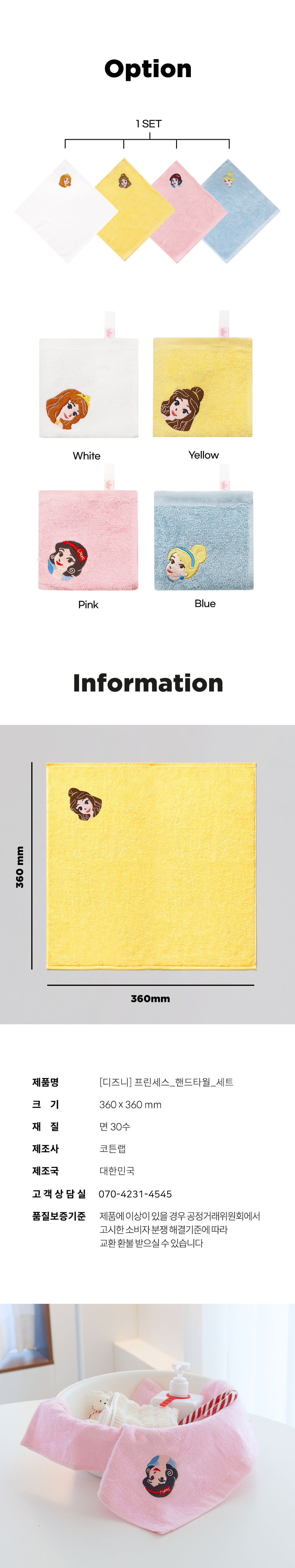 디즈니 공주 어린이집 고리 주방수건 4매세트