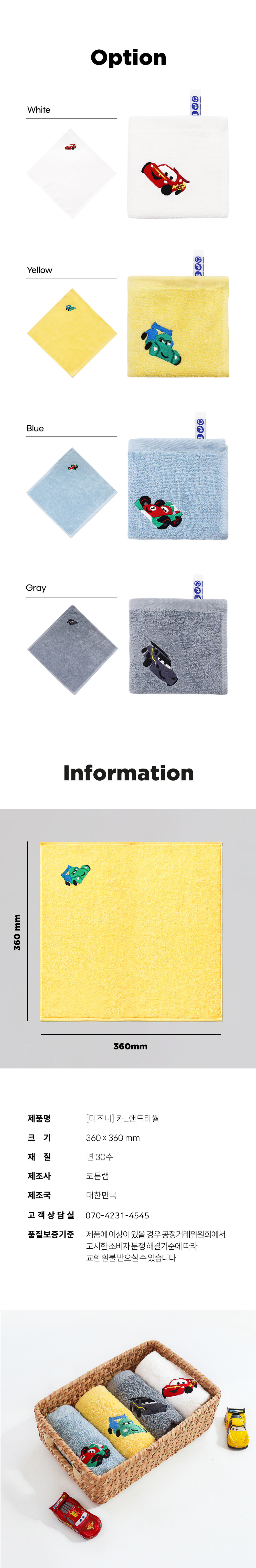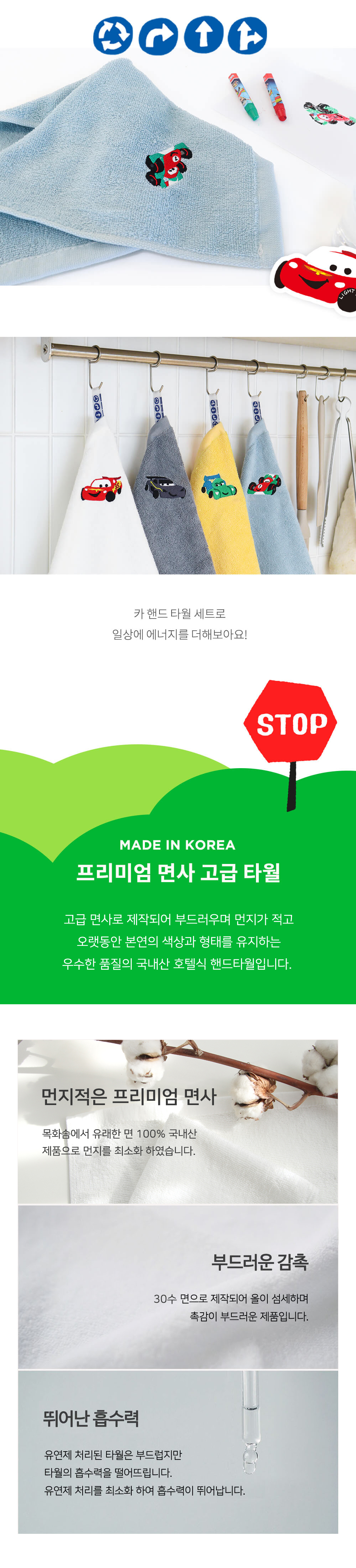 디즈니 카 어린이집 고리 주방수건 4매세트
