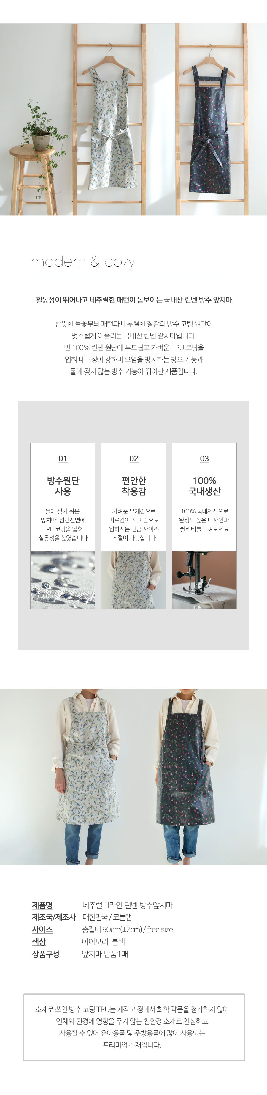 어린이집 TPU코팅 린넨 방수앞치마 >