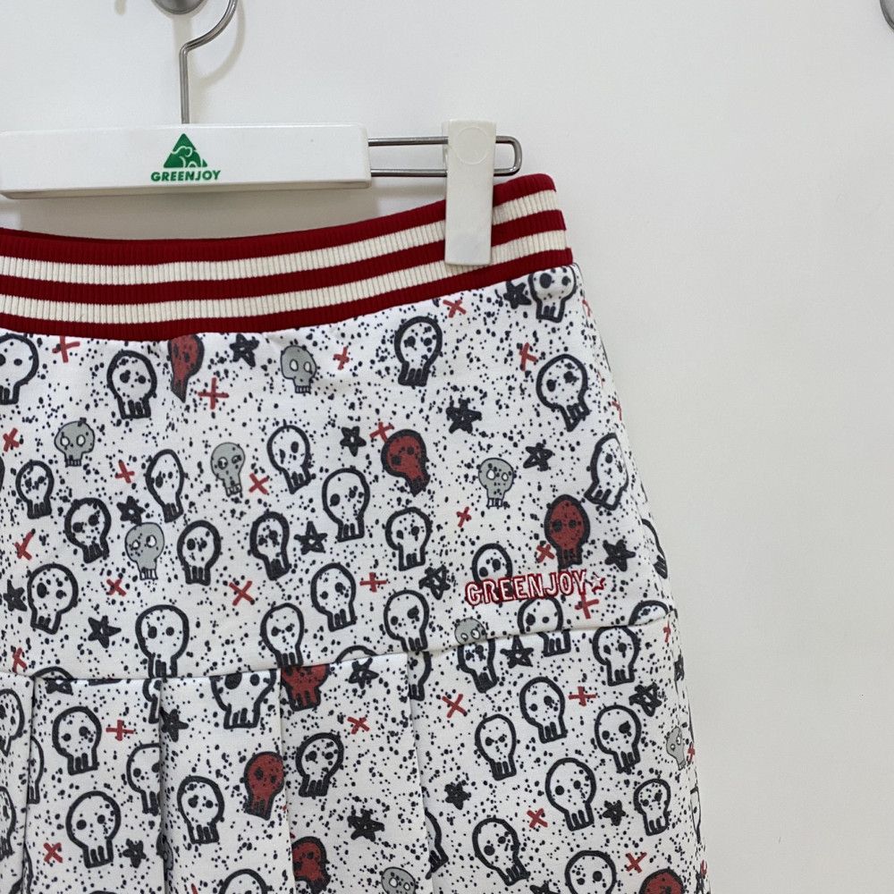전판 프린팅 패턴의 여성 큐롯 플리츠 스커트입니다. 허리 밴딩으로 착용감이 편안하며 플리츠 스타일로 활동성이 좋습니다.