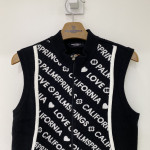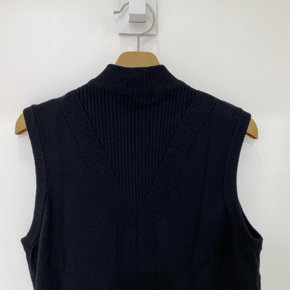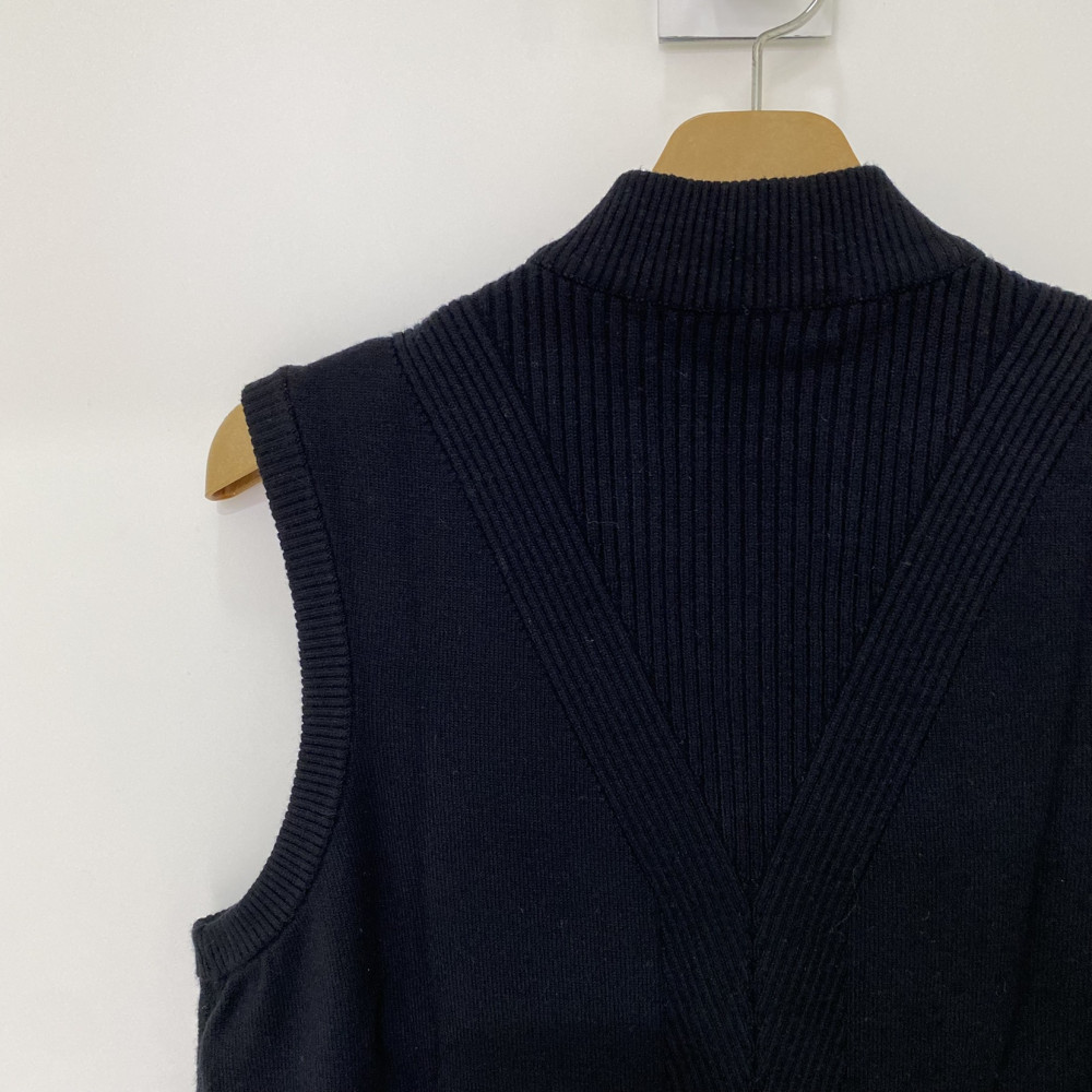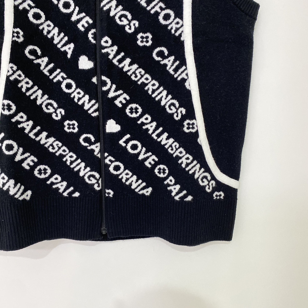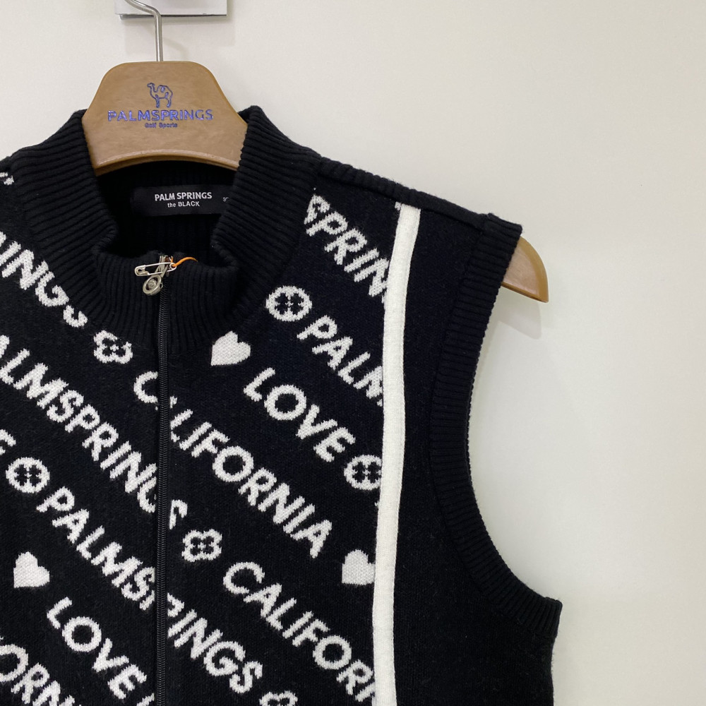 앞판에 로고 패턴이 들어가 포인트가 되어주는 풀집업 니트 베스트입니다.