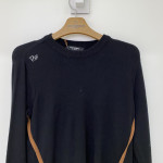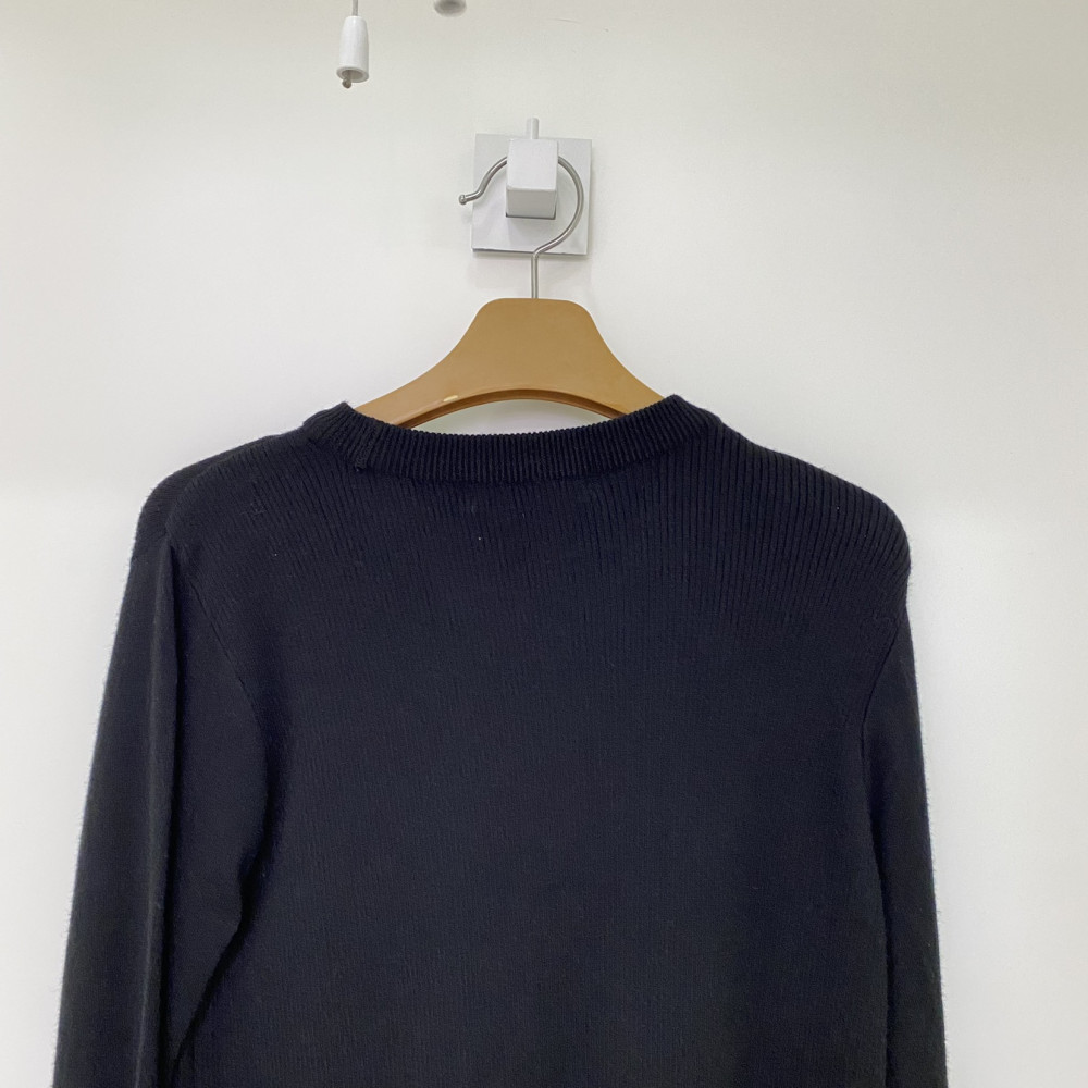 사이드 부분 양쪽 언밸런스하게 라인이 포인트로 들어간 라운드넥 긴팔 니트 스웨터입니다. 얇고 가벼워 편안하게 착용하기 좋습니다.