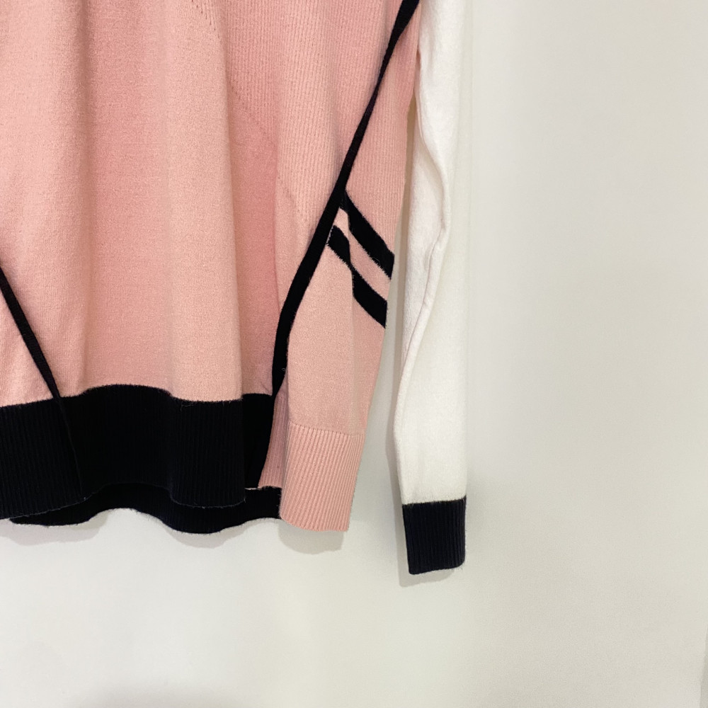 사이드 부분 양쪽 언밸런스하게 라인이 포인트로 들어간 라운드넥 긴팔 니트 스웨터입니다. 얇고 가벼워 편안하게 착용하기 좋습니다.