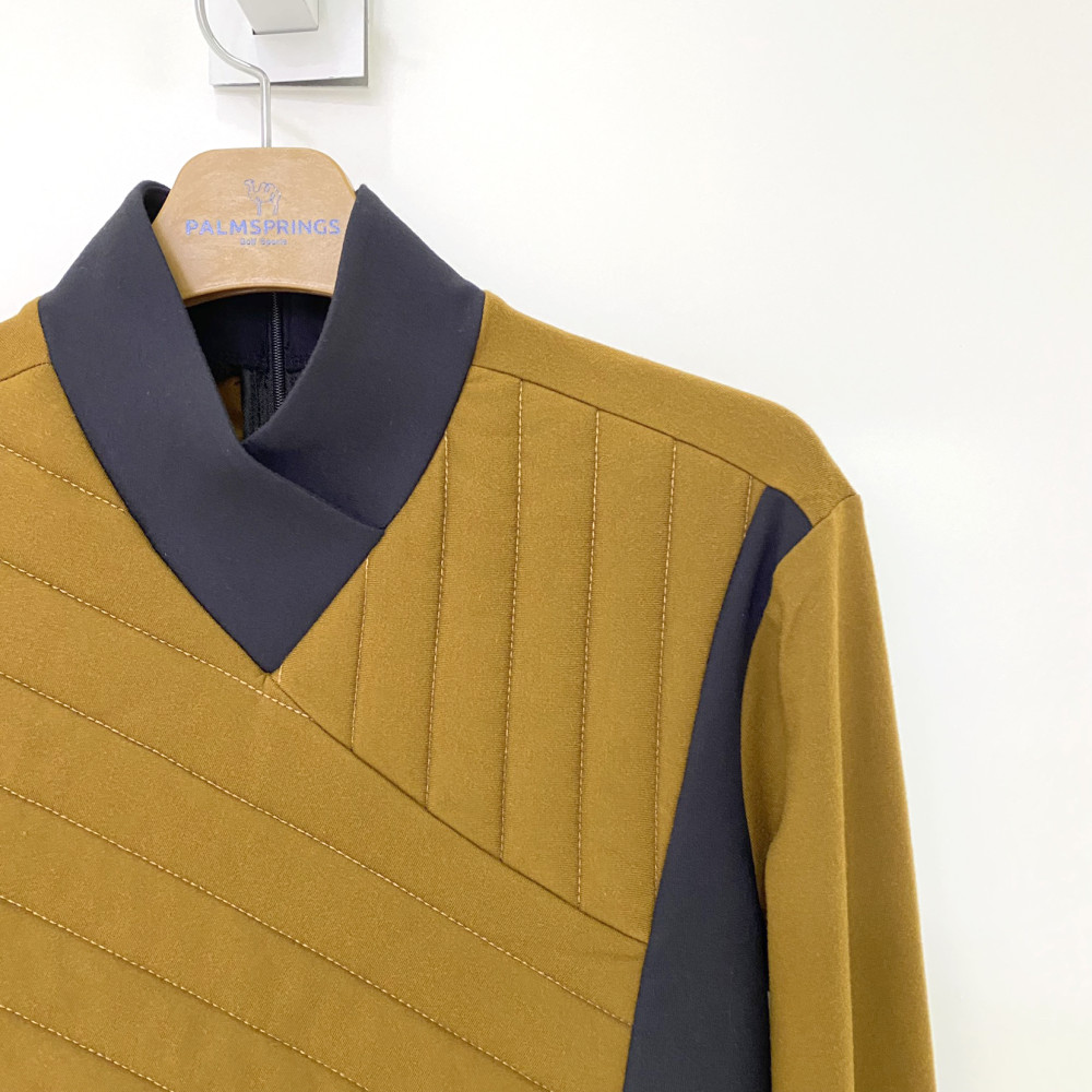 앞판 부분 패딩 퀼팅 배색으로 보온성을 더해준 브이넥 디자인의 반목 긴팔 티셔츠입니다.