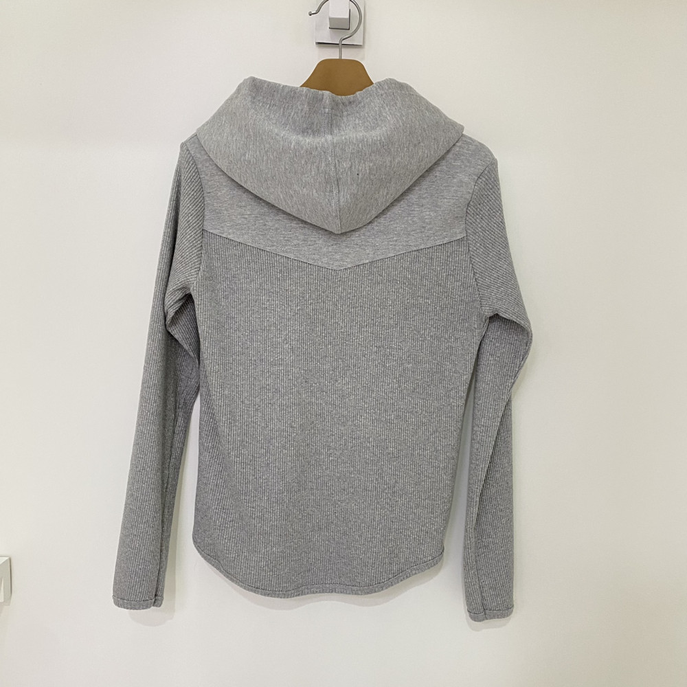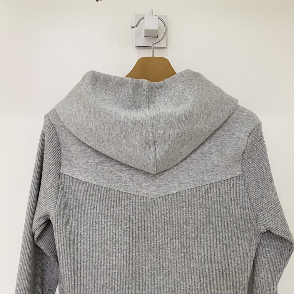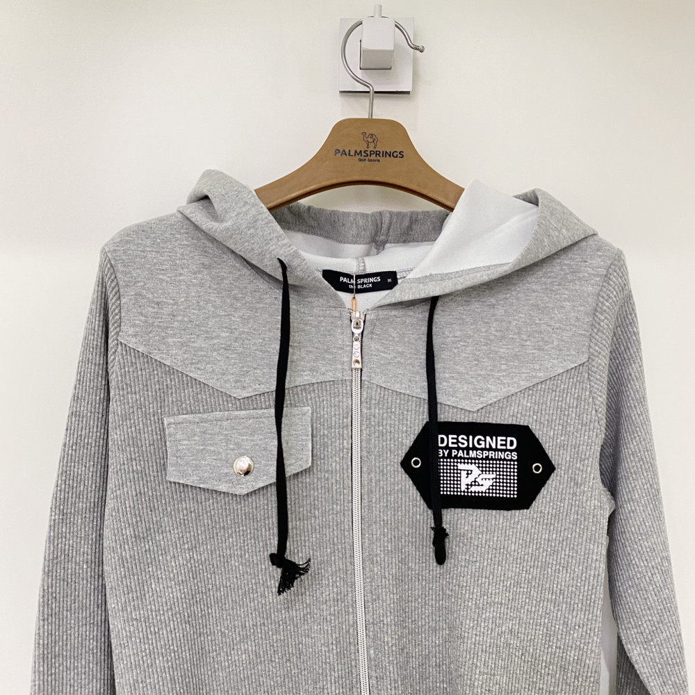 가슴 부분 포켓 포인트가 들어가있는 후드 풀집업 골지 티셔츠입니다. 가볍고 편하게 착용하기 좋습니다.