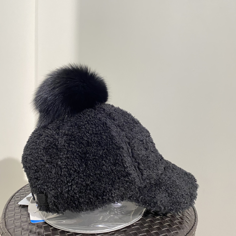 귀여운 퍼 방을 장식이 포인트로 들어가있는 뽀글이 부클 캡 모자입니다.