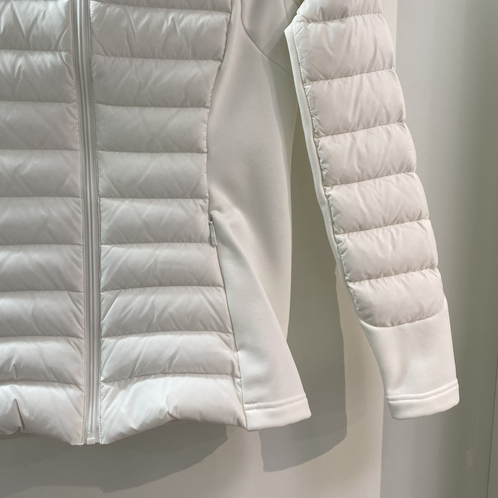 따뜻하고 포근한 구스 다운 소재의 후드 점퍼입니다. 져지 소재 배색과 여러 방향의 퀼팅 등의 다양한 디테일로 착용감이 정말 편안한 겨울 점퍼입니다.