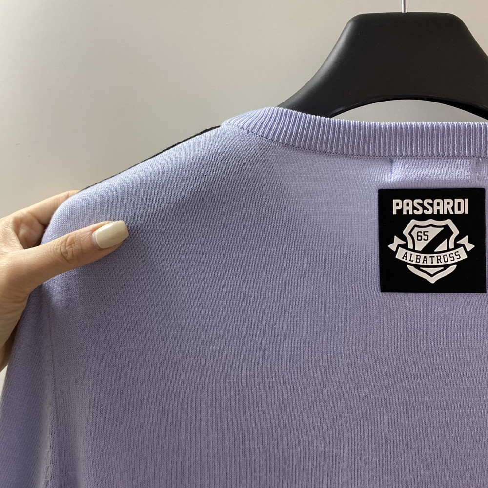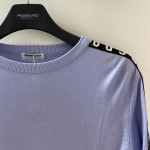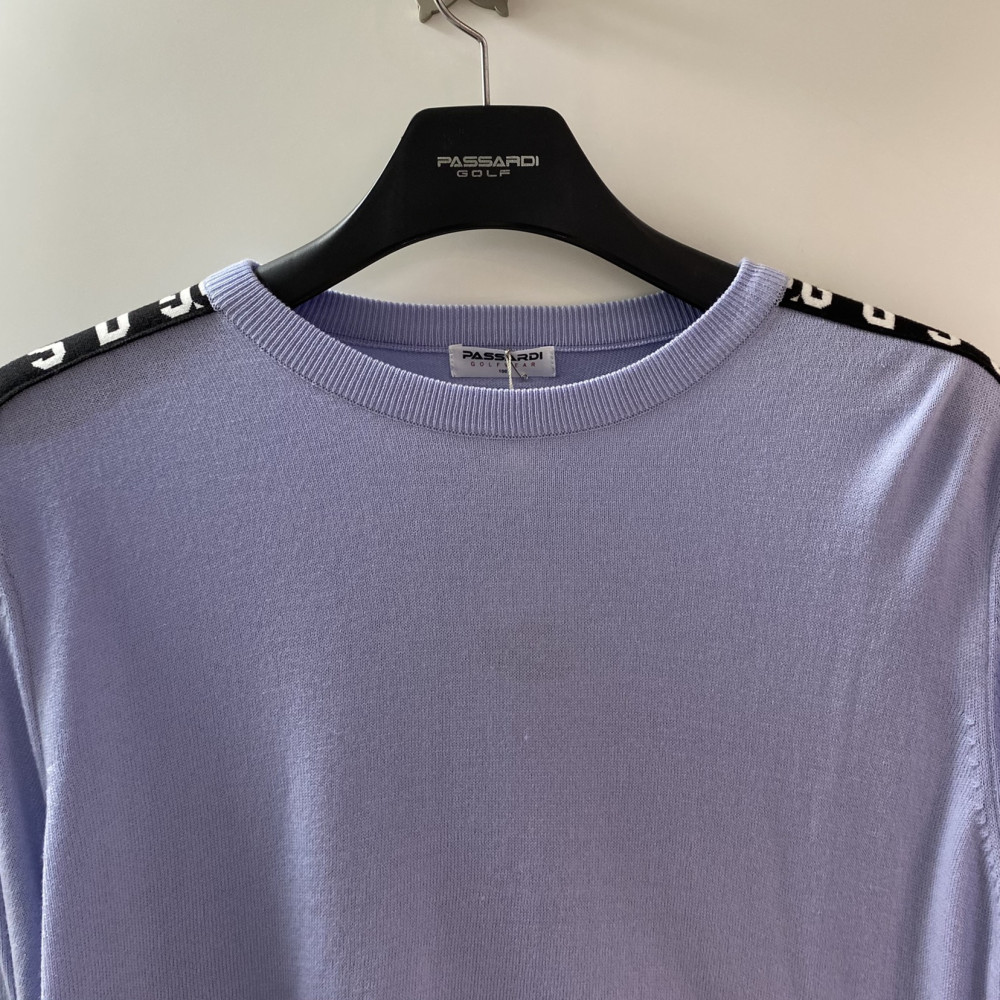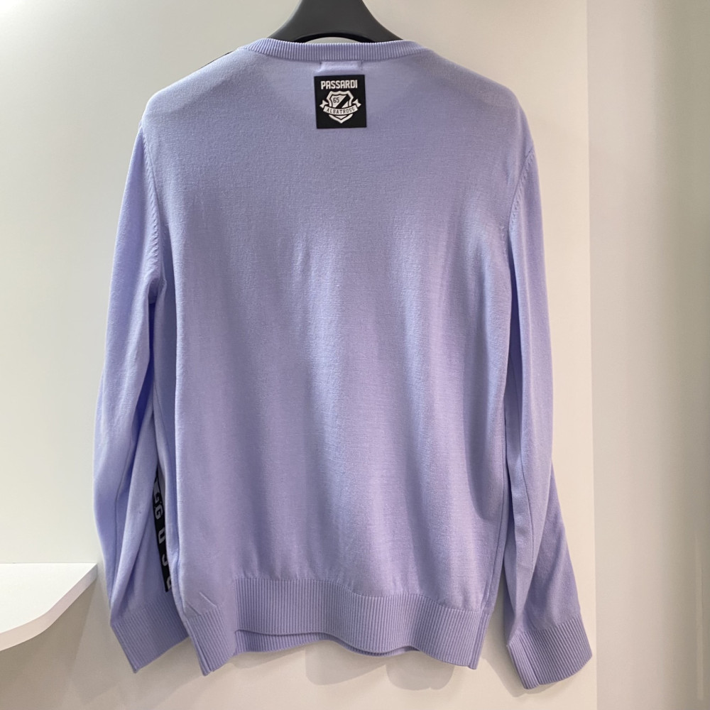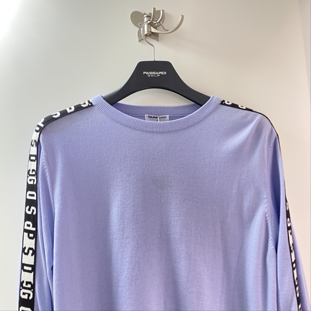 소매 부분 레터링 라인 테잎 배색이 포인트로 들어가있는 라운드넥 디자인의 긴팔 니트웨어로, 부드럽고 착용감이 편안합니다.
