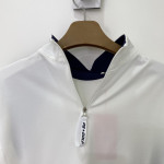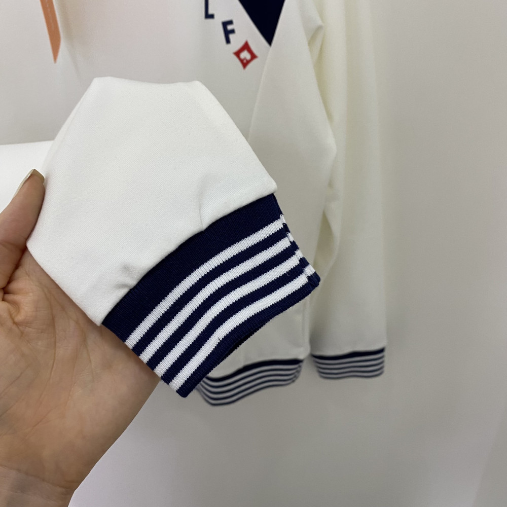 밑단 부분 스트라이프 시보리가 포인트로 들어가 경쾌한 느낌을 더해주는 긴팔 반목 티셔츠입니다.