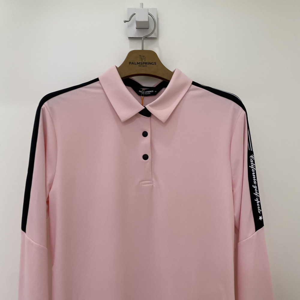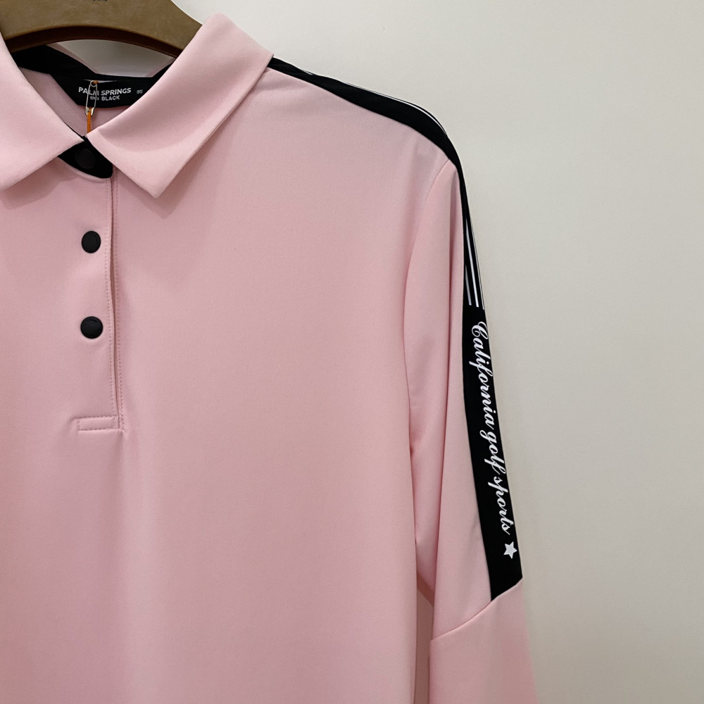 소매 부분 라인 배색 포인트가 들어가있는 긴팔 카라 티셔츠입니다.