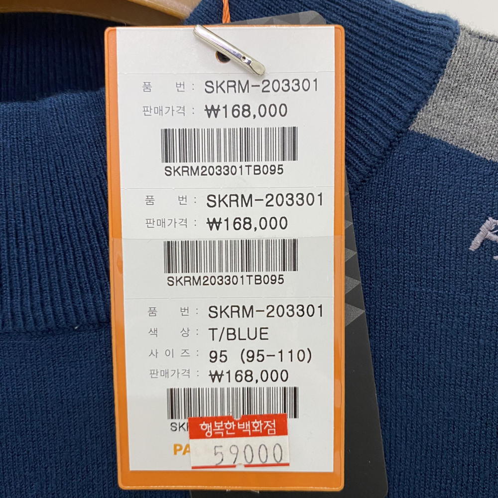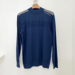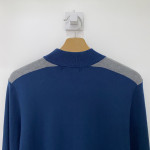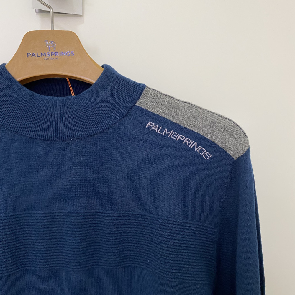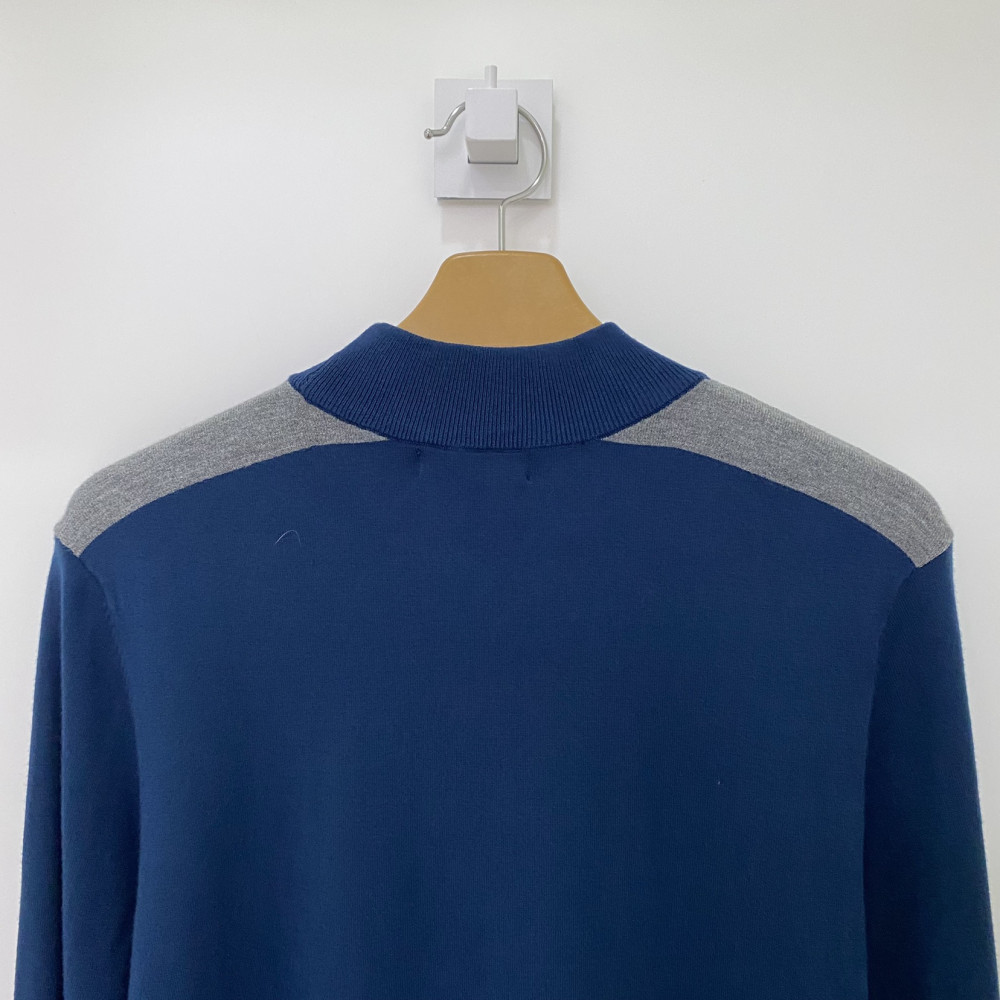 어깨 부분에 컬러 배색이 포인트로 들어가있는 반목 디자인의 남성용 긴팔 니트입니다.