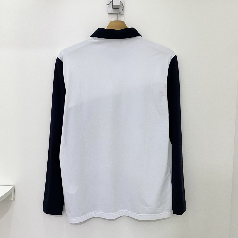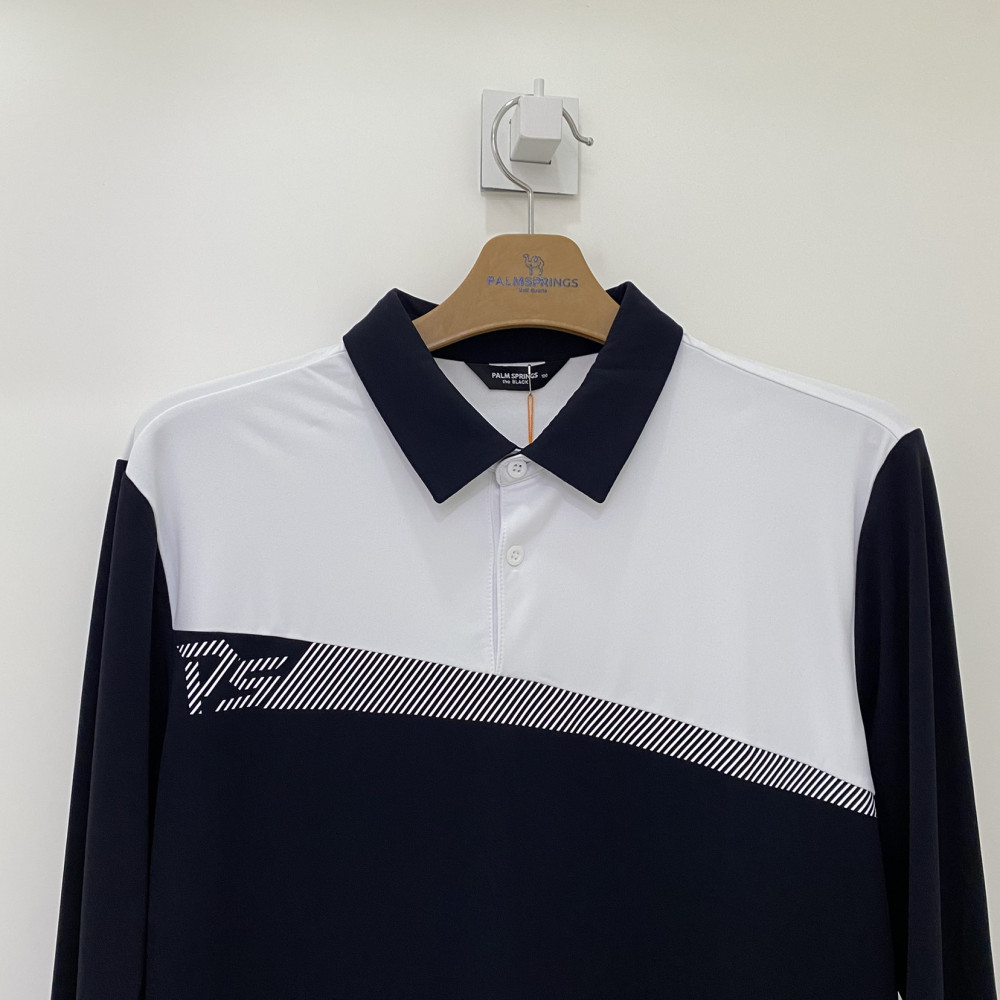 앞판에 사선으로 컬러 배색이 들어가있는 부드럽고 신축성이 좋아 착용감이 편안한 남성용 긴팔 카라 티셔츠입니다.