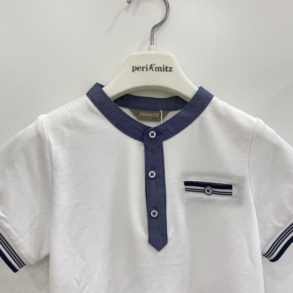 헨리넥 스타일의 남아용 여름 반팔 티셔츠입니다.