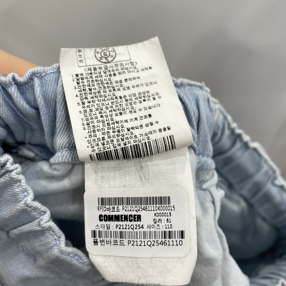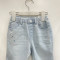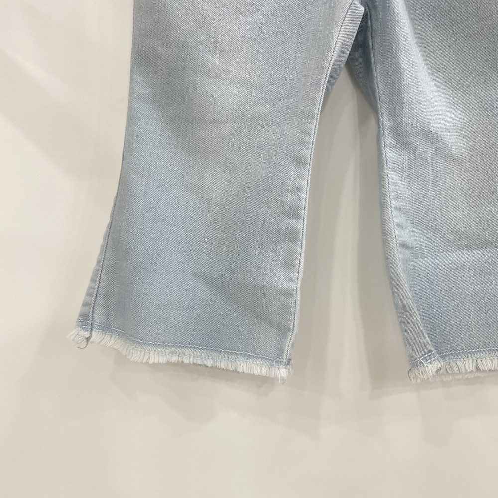 주머니 부분 사랑스러운 플라워 자수가 포인트로 들어가있는 아이스 블루 컬러의 7부 데님 팬츠입니다.