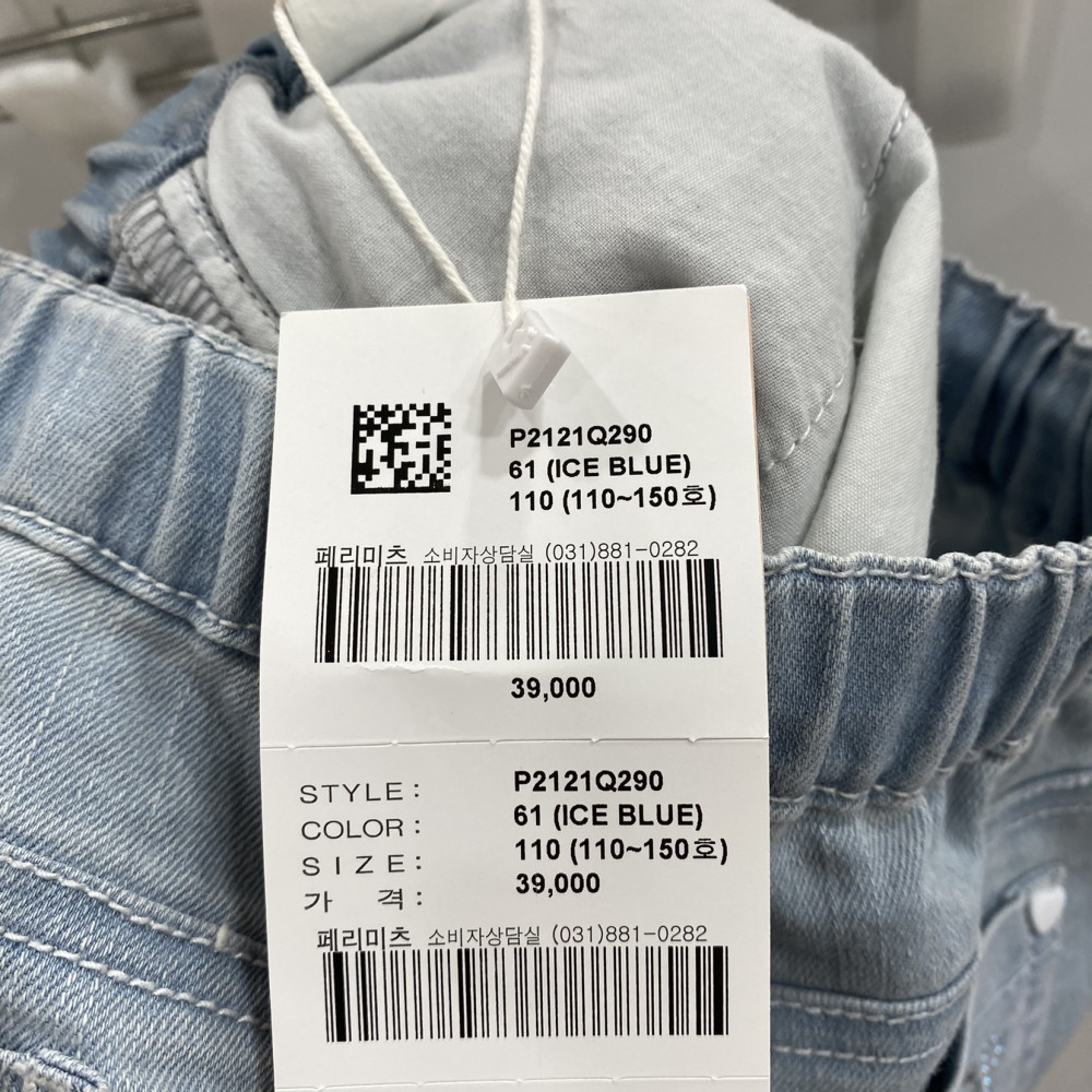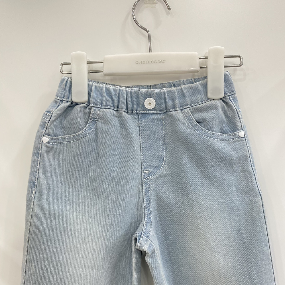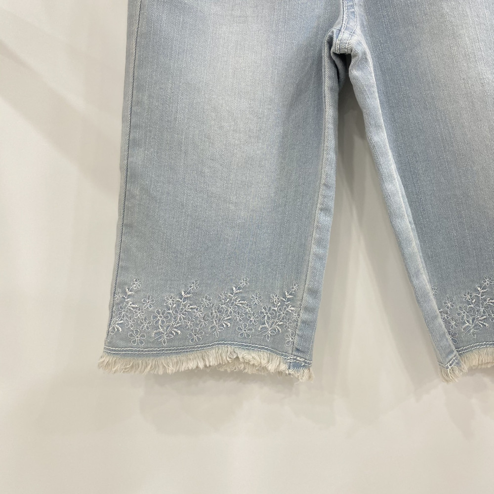 데님 밑단 부분 러블리한 자수가 포인트로 들어가있는 아이스블루 컬러의 7부 데님입니다.