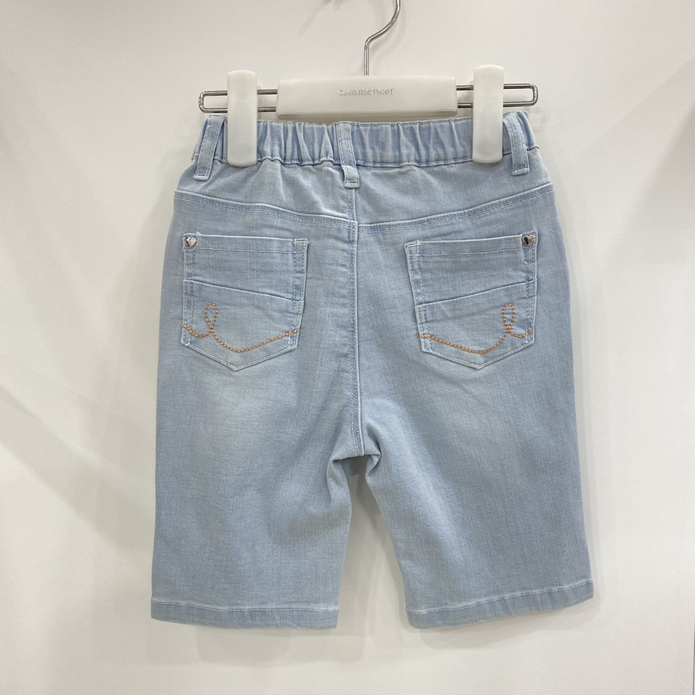 시원한 인디고 블루 컬러의 리본 포인트 5부 데님입니다.