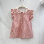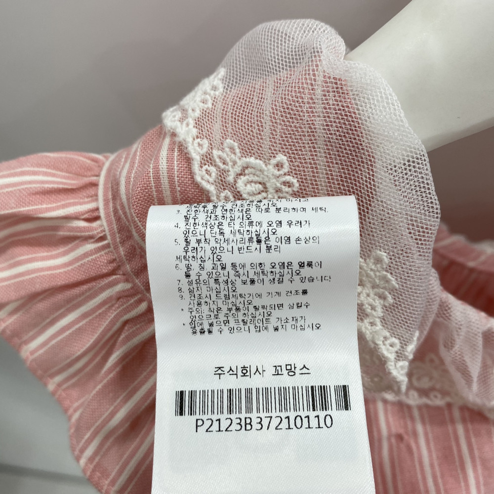 네크라인 레이스 카라 포인트 스트라이프 민소매 블라우스 입니다.