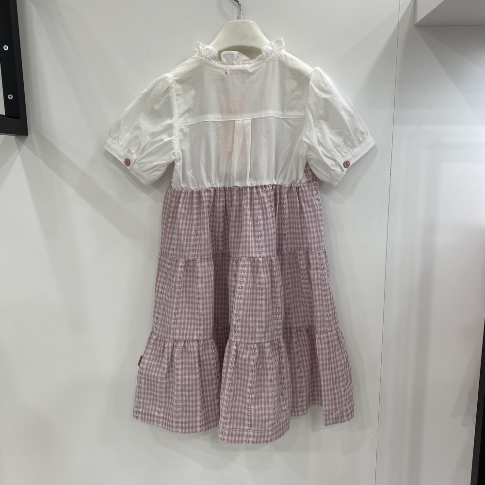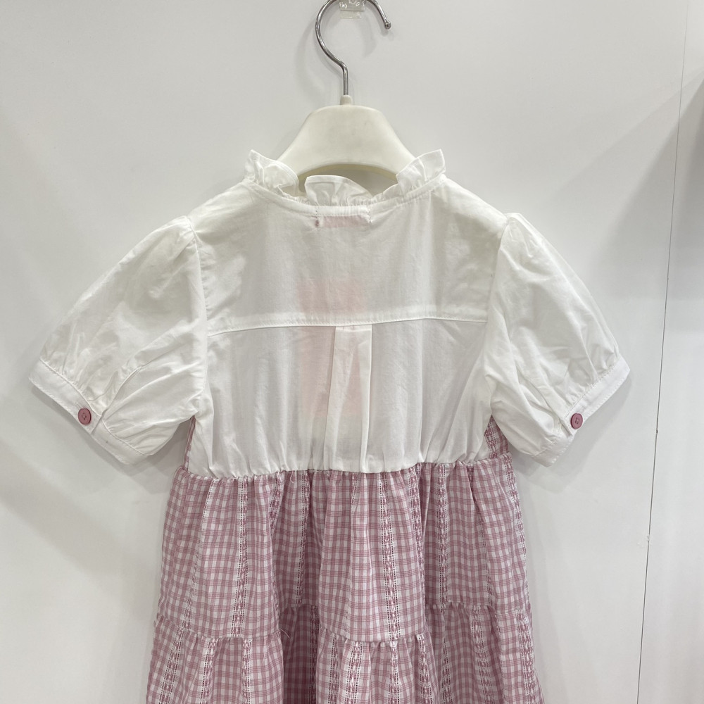 네크라인 프릴 포인트가 들어가있는 러블리한 반팔 체크 캉캉 원피스입니다.